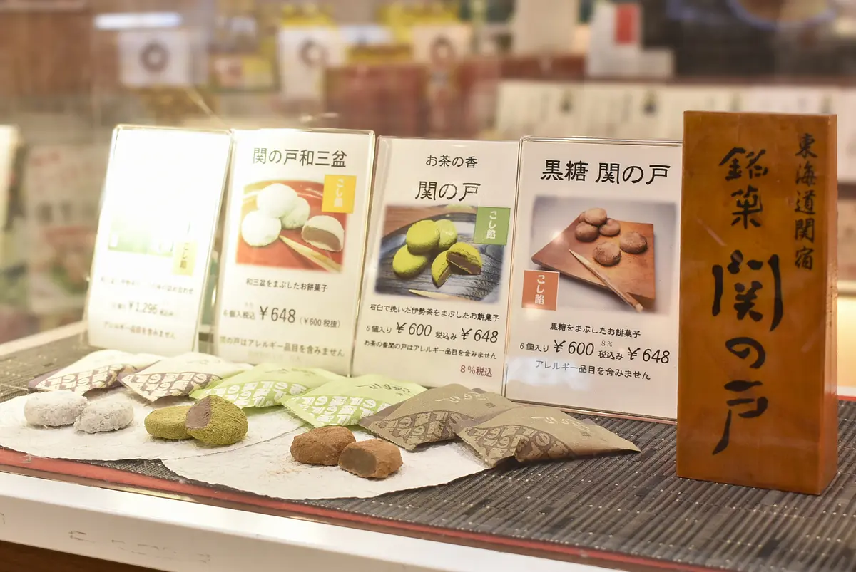 東海道の宿場町・関宿で江戸時代から続く深川屋の銘菓「関の戸」(6個入648円)も定番の和菓子。赤小豆のこし餡を薄い求肥餅で包み、和三盆や粉末茶、黒糖などをまぶしたタイプがあります。