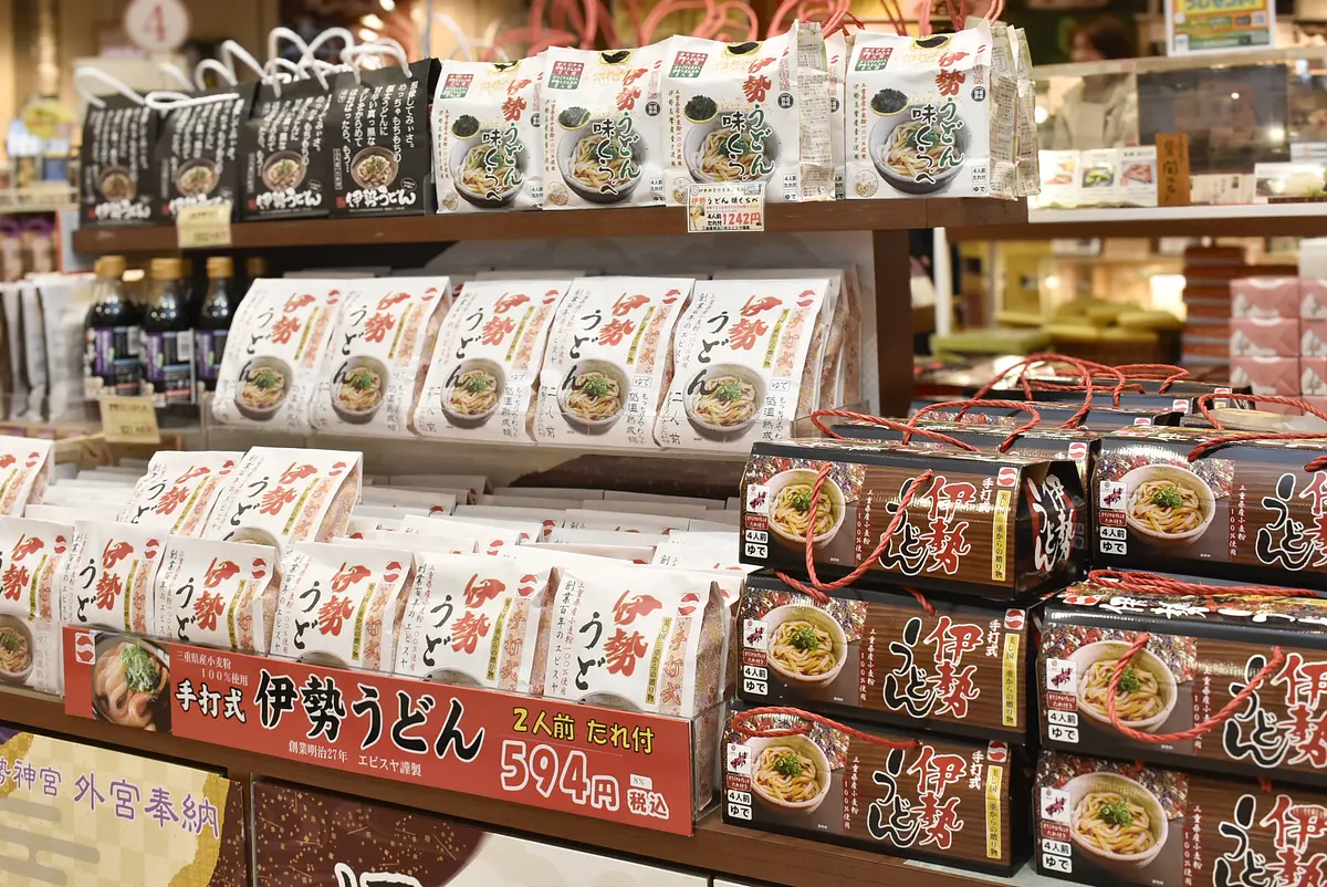 伊勢名物「伊勢うどん」も豊富なラインナップ。明治27年創業のエビスヤ三重食品の「手打ち式伊勢うどん」(2人前594円)をはじめ、太く柔らかい麺、真っ黒く甘辛いたまりしょうゆ仕立てのたれが独特の風味を醸し出す伊勢うどんを自宅で手軽に楽しめます。