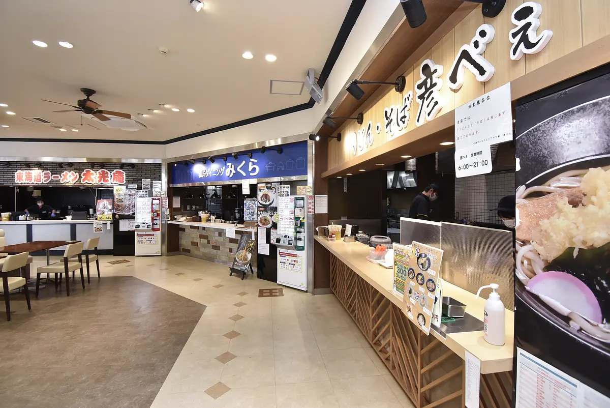 フードコートには「うどん・そば 彦べえ」「和洋ダイニングみくら」「らーめん太光庵」の3店舗が並んでいます。それぞれの人気メニューをご紹介。
