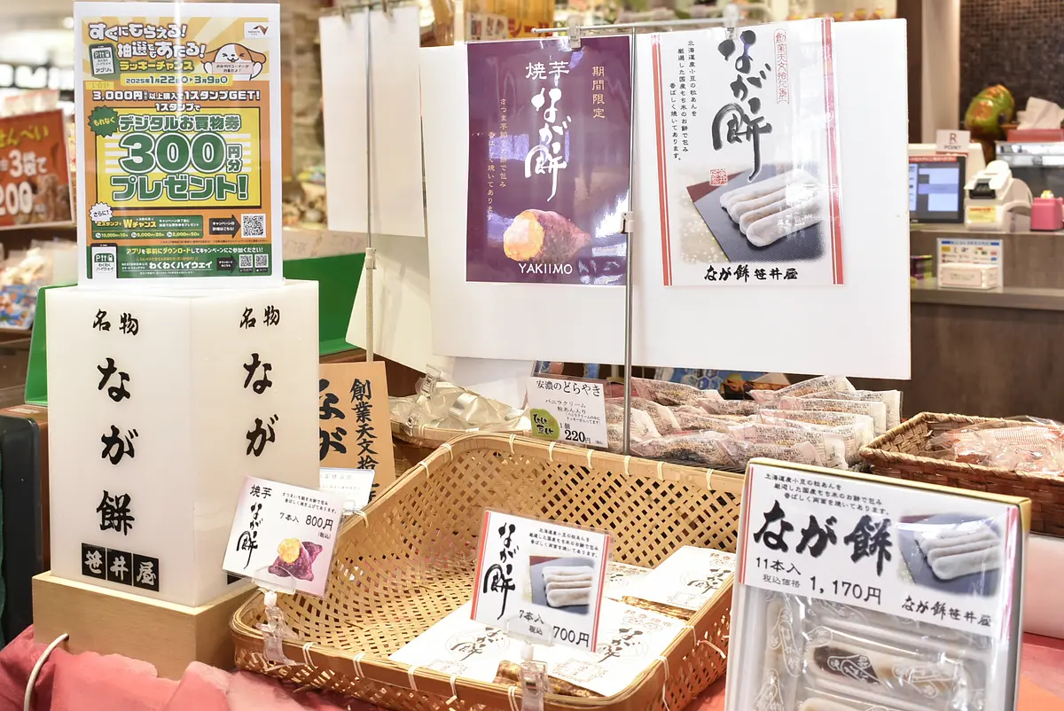 甘味のお土産では1550年創業の四日市・笹井屋の「なが餅」(7本入700円)に注目。独自の製法で炊き上げた北海道小豆の餡を、厳選した国産もち米を丹念につきあげたお餅で包んだ素朴な味わいが人気の秘密です。