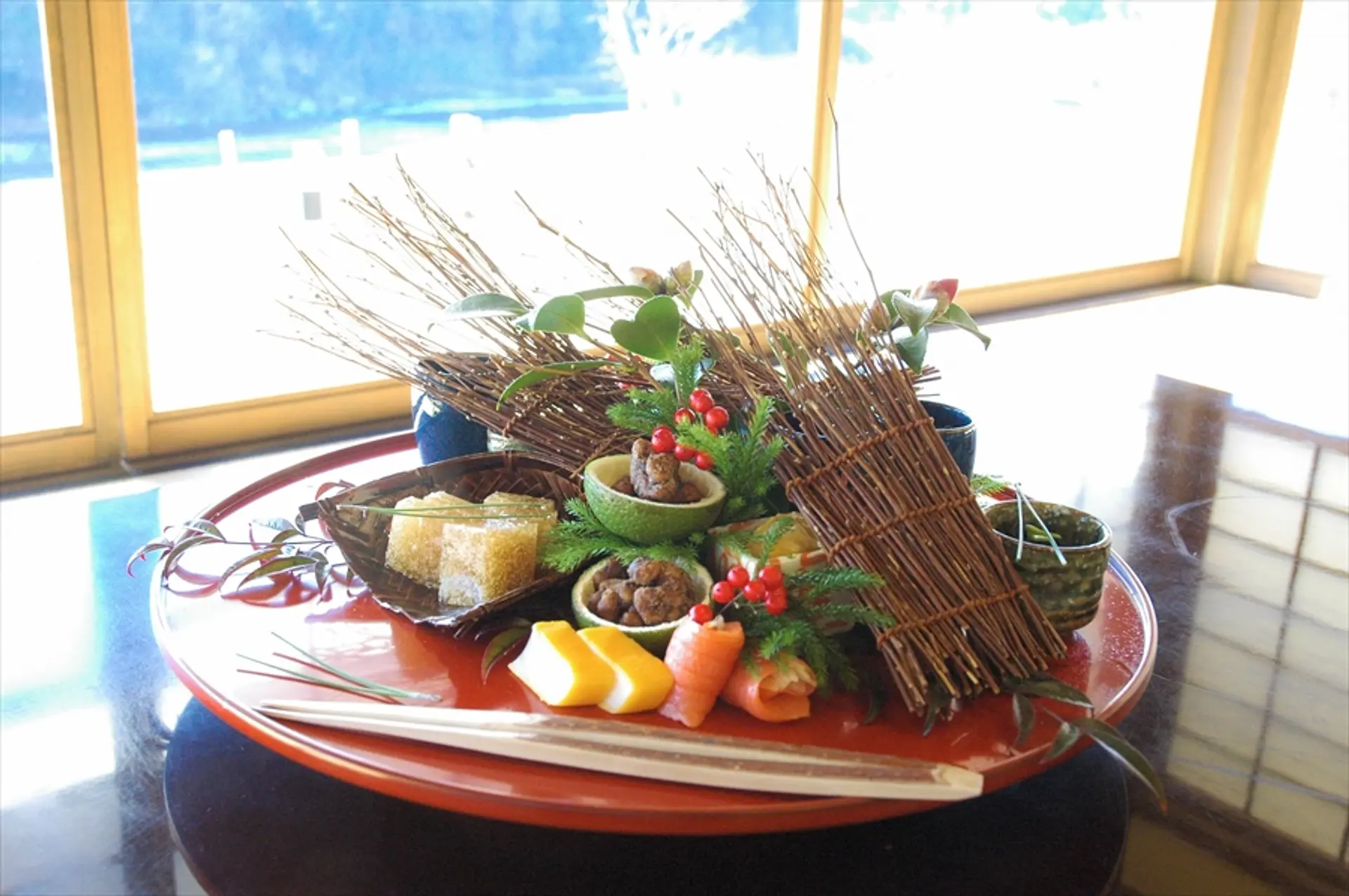 生け花を彷彿とさせる、芸術作品のような雰囲気です。里芋や南瓜などの野菜と、いくらやうになどの珍味がふんだんに使われていて、実に贅沢な品々です。助子(すけこ、スケソウダラの卵)のゼリー寄せ、ぷちぷちの食感と甘辛系の味つけがたまらなく美味でした。