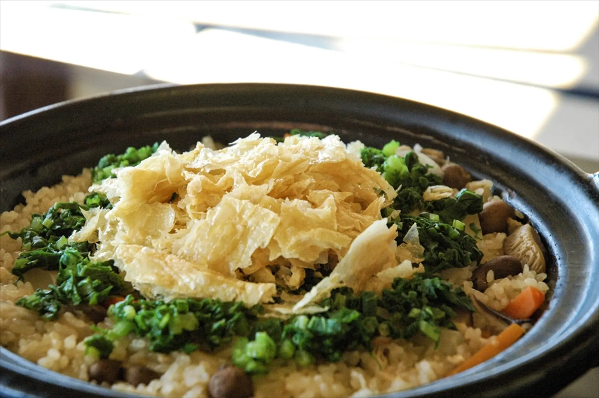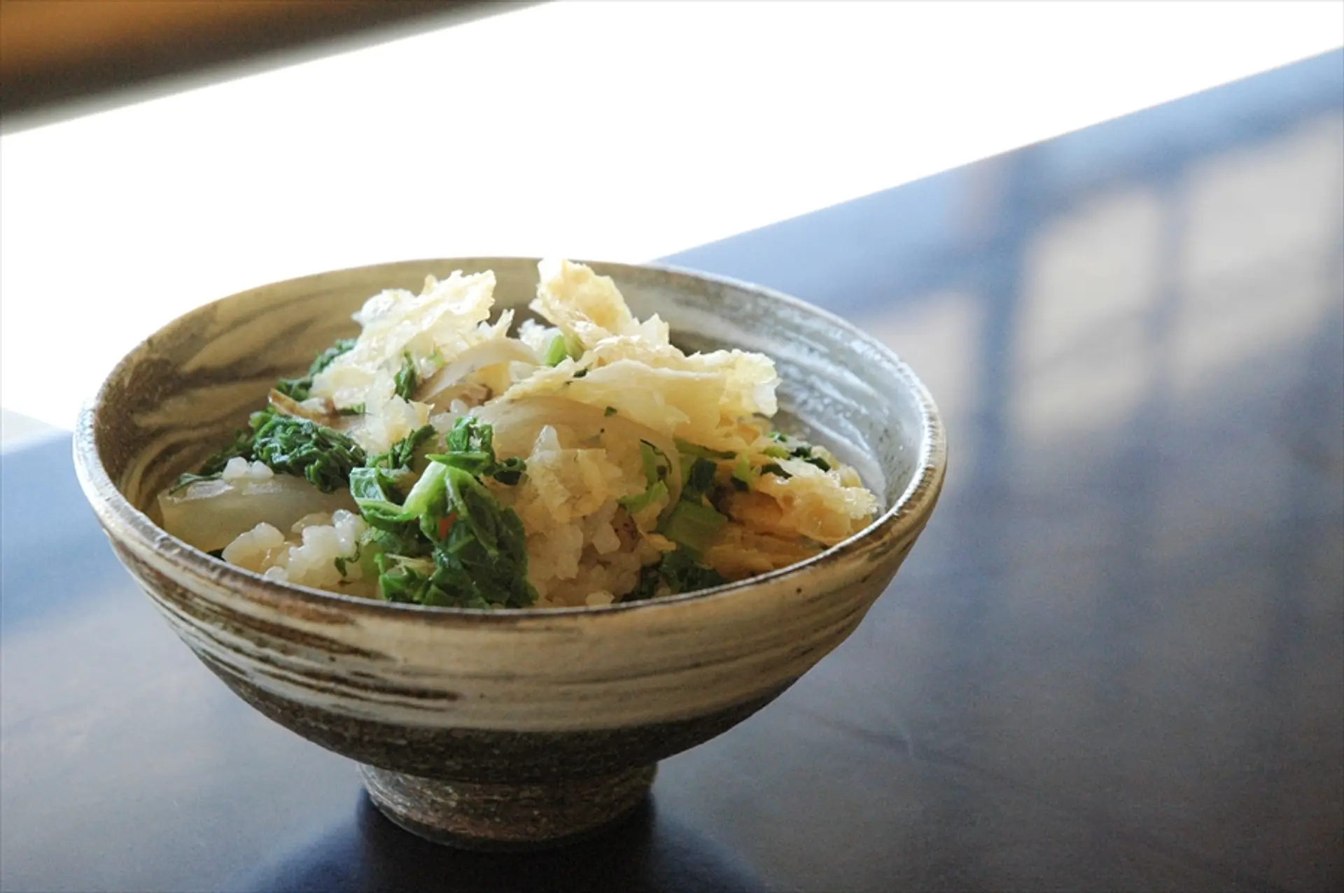 大根、人参、牛蒡、椎茸、零余子(むかご)の風味がふっくらと炊かれたごはんにしっかりと染み込んでいます。お野菜もみんなやわらかい!