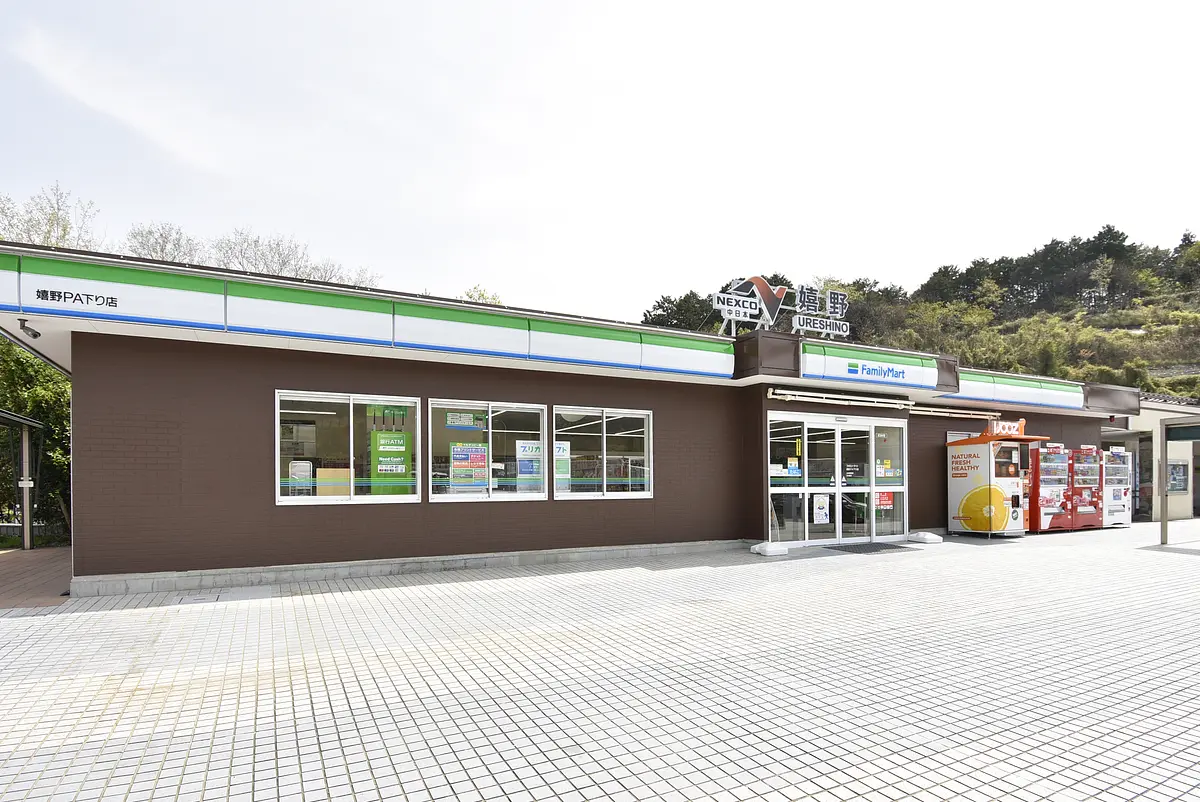 伊勢自動車道で伊勢方面に向かう際には最後に立ち寄れる嬉野パーキングエリア下り。コンビニエンスストア(ファミリーマート)とトイレが利用できます。