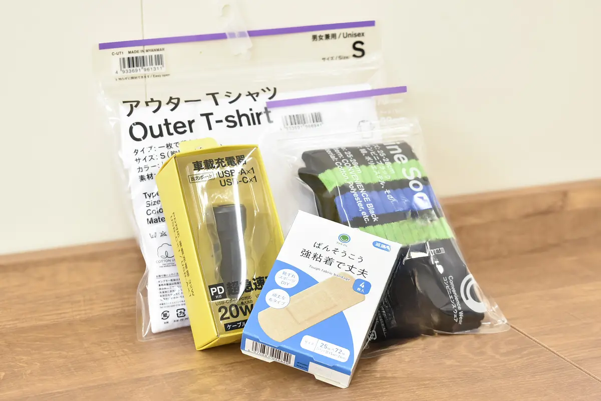 ファミリーマートはアパレルブランドの「コンビニエンスウェア」を展開しており、衣料品の品揃えも充実。インナーTシャツやショーツ、靴下などが必要になった際も手軽に購入できます。