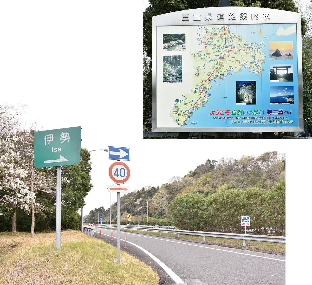 店舗の横には観光の案内板も。これから始まる旅の楽しみに思いを馳せながら目的地へのドライブをお楽しみください。