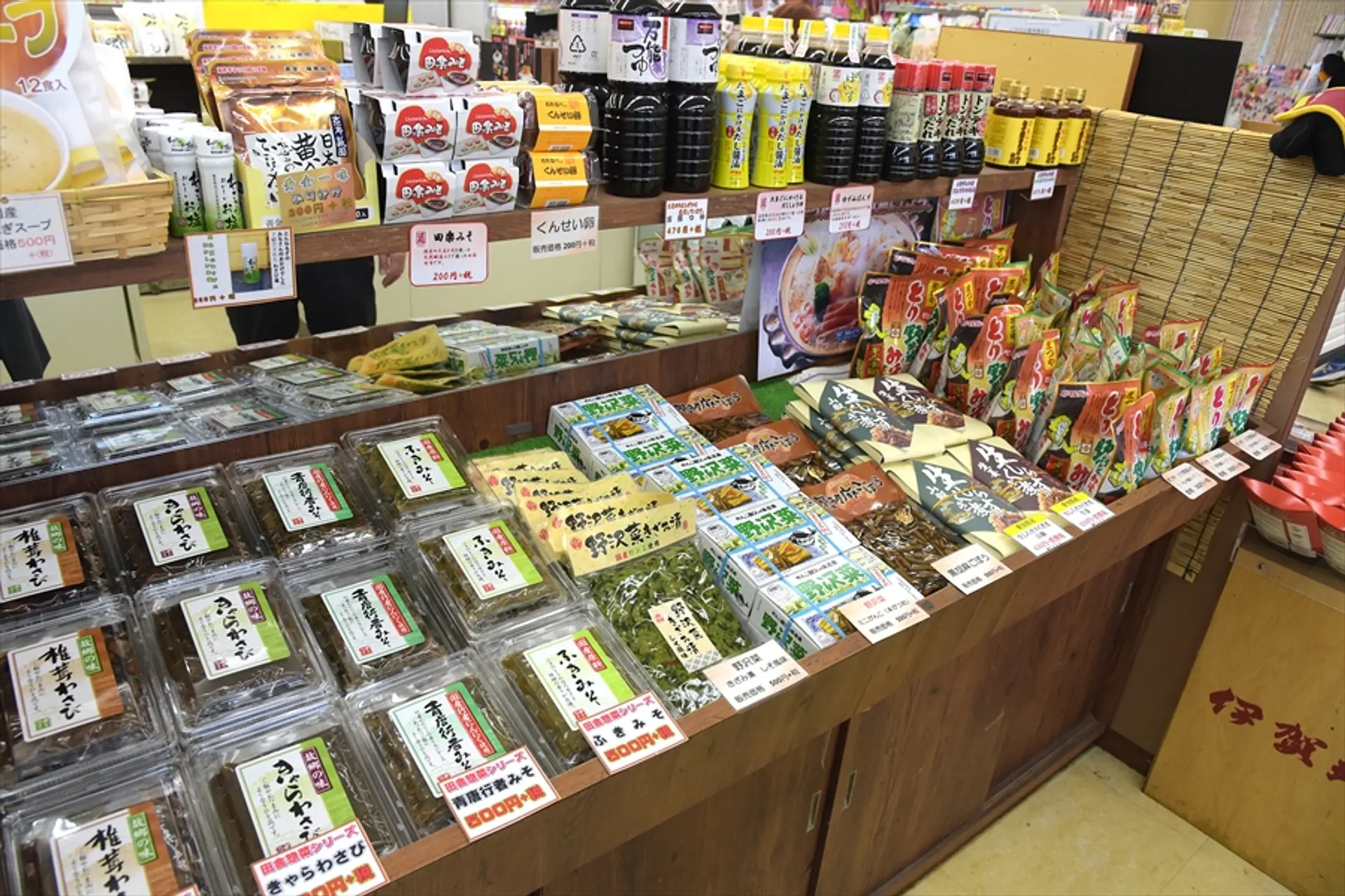 こちらも自分へのお土産、自宅用のお土産に売れているそう。「椎茸わさび」、「きゃらわさび」、「青唐行者みそ」、「ふきみそ」各548円。