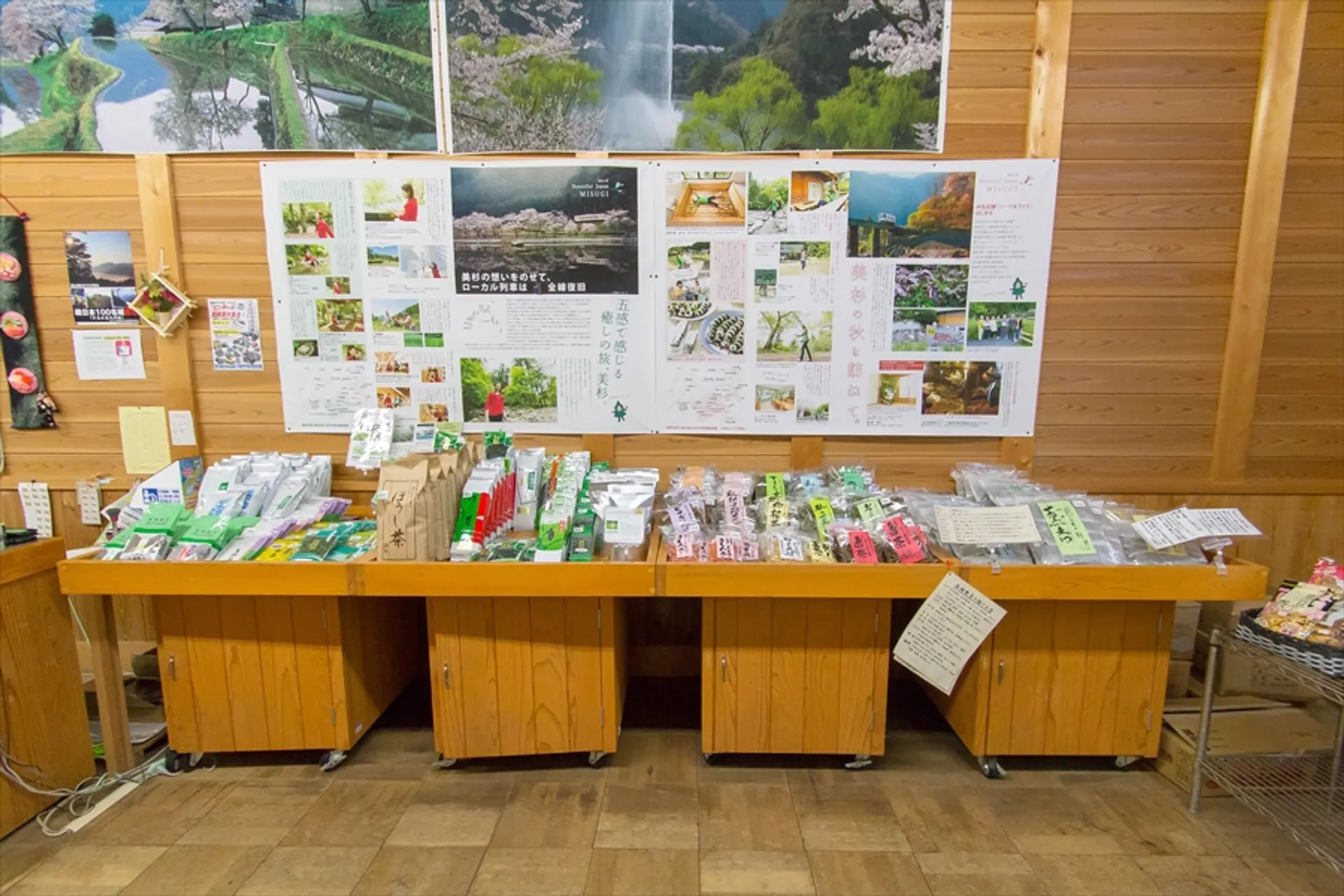 こんにゃく、椎茸、ジビエなどの美味しい地物はもちろん、JR名松線や美杉のゆるキャラ「みずぎん」グッズも大人気!レンタサイクルもあり、美杉の自然を肌で感じられる道の駅。