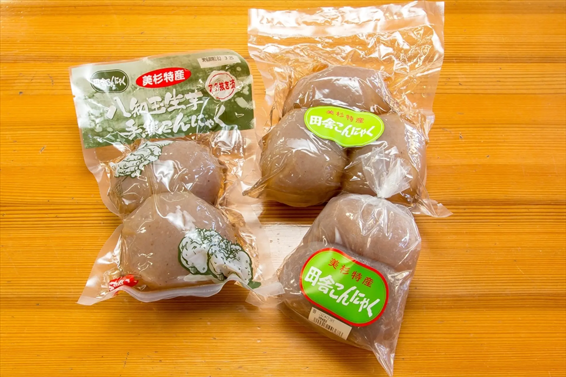 「八知玉生芋手練(やちだまなまいもてねり)こんにゃく」378円。美杉のこんにゃくは歯ごたえがあるので、食感を楽しみつつ、わさび醤油や生姜醤油につけて刺身として味わうのがオススメです。