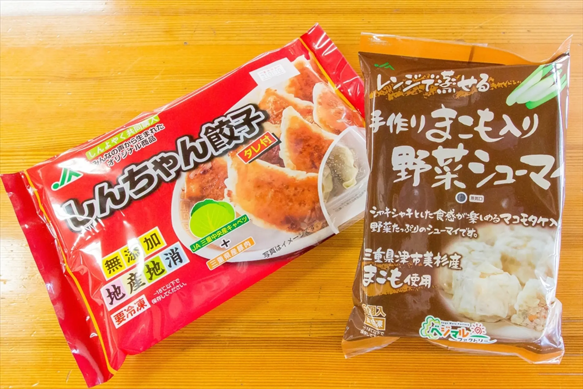 三重県産の野菜と豚肉を使った「しんちゃん餃子」388円。