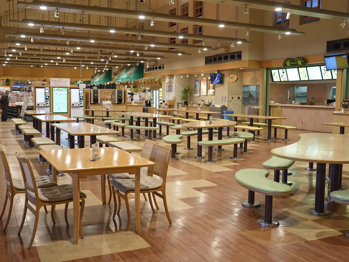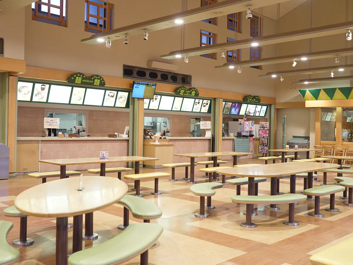 広々とした開放感のあるスナックエリア(フードコート)。ゆったりとした空間で、気軽に食事を楽しむことができます。