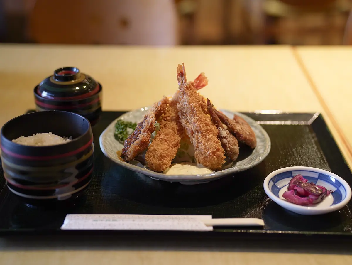 名古屋名物を一度に堪能できる贅沢なセットメニュー。「味噌カツ」の濃厚な味わい、「エビフライ」のプリッとした食感、そして「手羽先」の香ばしい風味がセットになっており、名古屋グルメの魅力を存分に楽しめます。