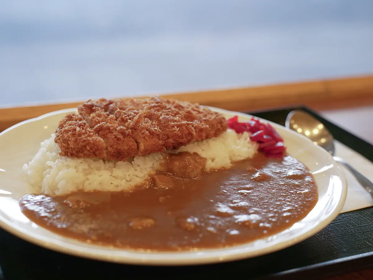 「カツカレー」(1,000円)は、長島温泉「ホテル 花水木」のホテルレストランシェフが監修した本格派のビーフカレーに、サクサクのトンカツをトッピングした贅沢な仕上がり。見た目にも満足感たっぷりのこの一皿は、お腹をしっかり満たしたい方にぴったりです。