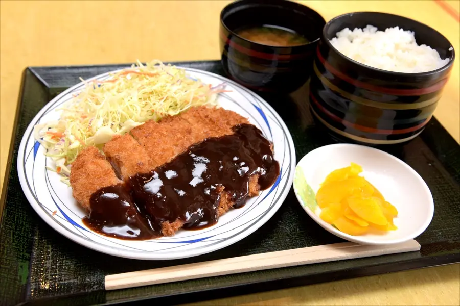「みそかつ定食」(960円)は、サクサク衣の柔らかいトンカツに八丁味噌の特製だれが絡み、ご飯が進む一品。濃厚な味噌の甘さとコクが特徴。