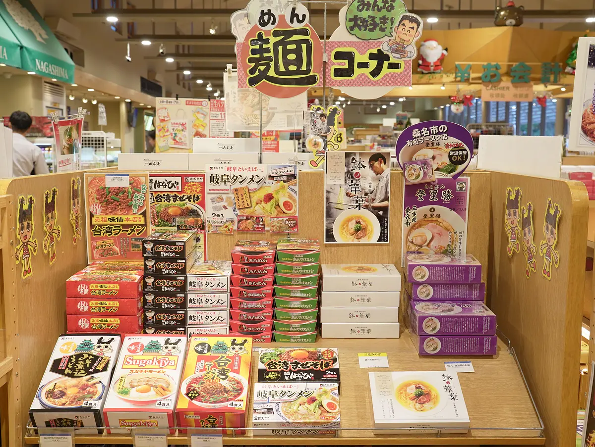 麺コーナーでは「スガキヤ」をはじめとするラーメンなど、自宅で楽しめる商品が多数揃っています。