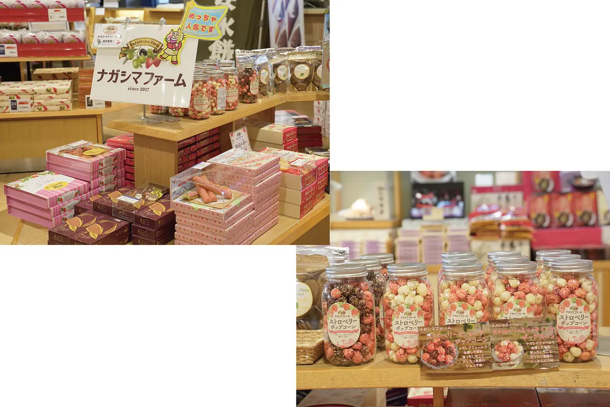 パーキングエリアの近くにある「ナガシマファーム」で栽培された新鮮ないちごを使ったお菓子もずらりと並んでいます。