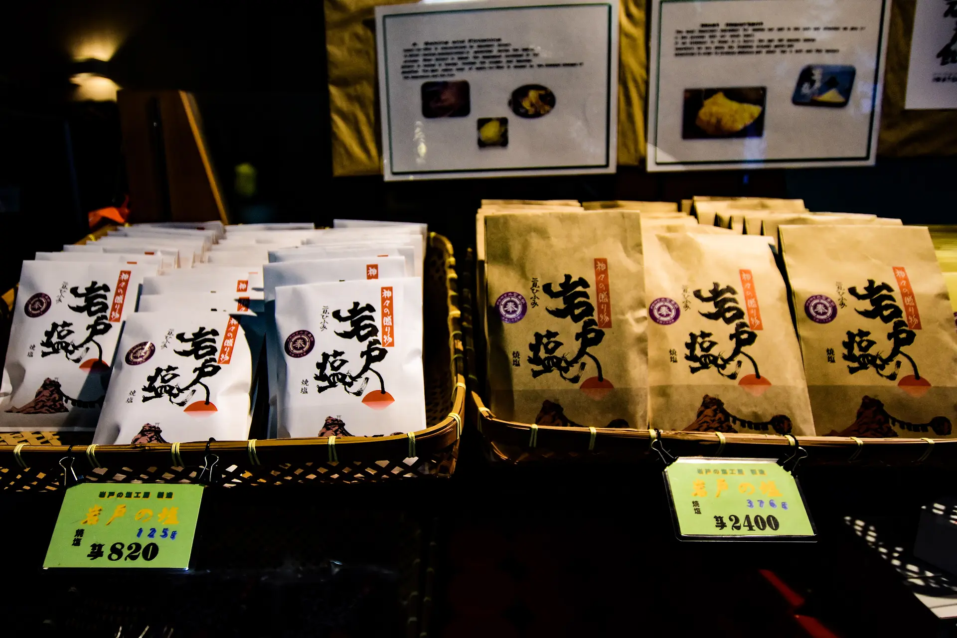 こちらが「岩戸の塩」。神社から4分ほど歩いたところにある「岩戸館」という宿で購入することができます。