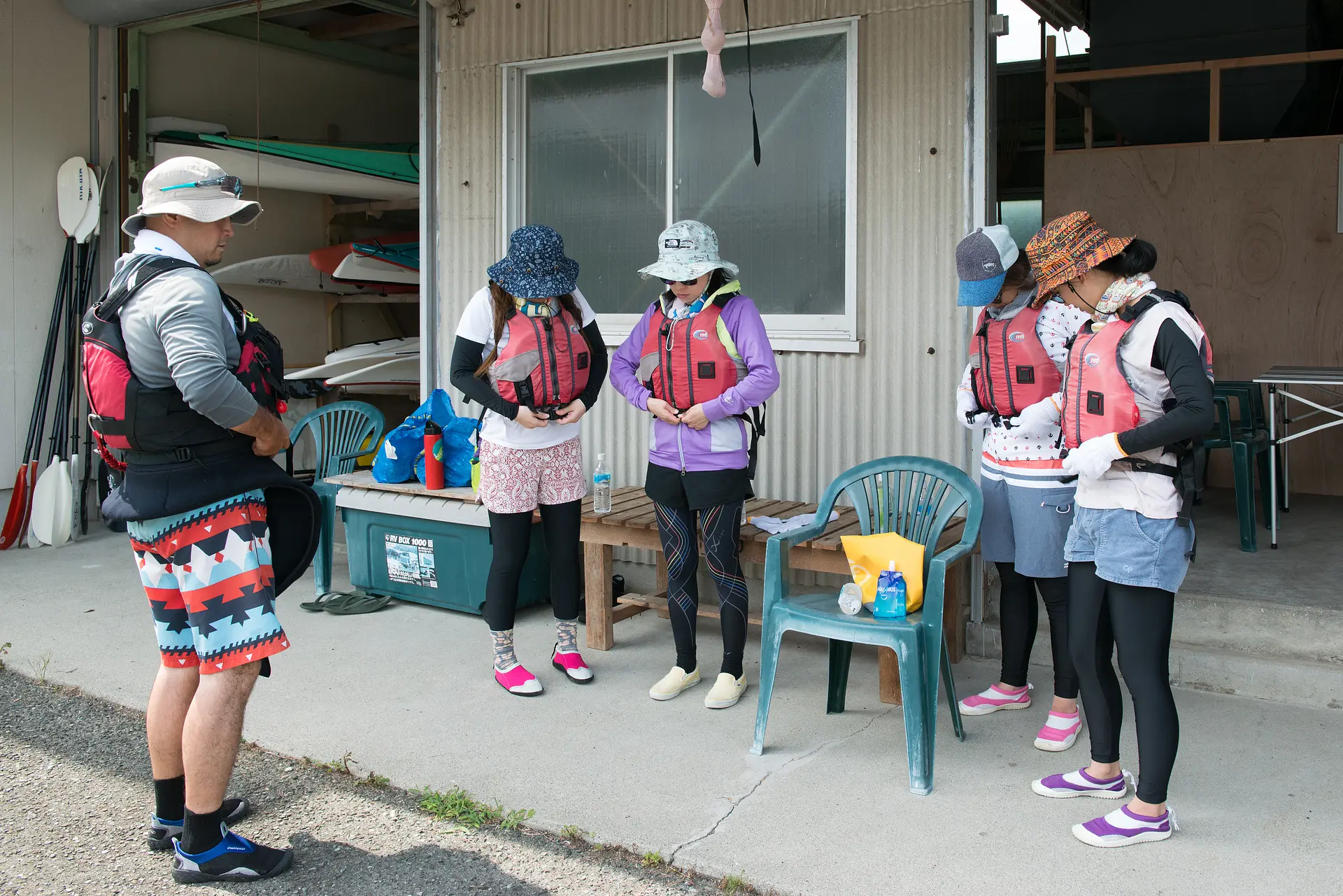 スタッフさんが乗り方や漕ぎ方を丁寧に教えてくれました。ライフジャケットを着るので、初心者でも安心。