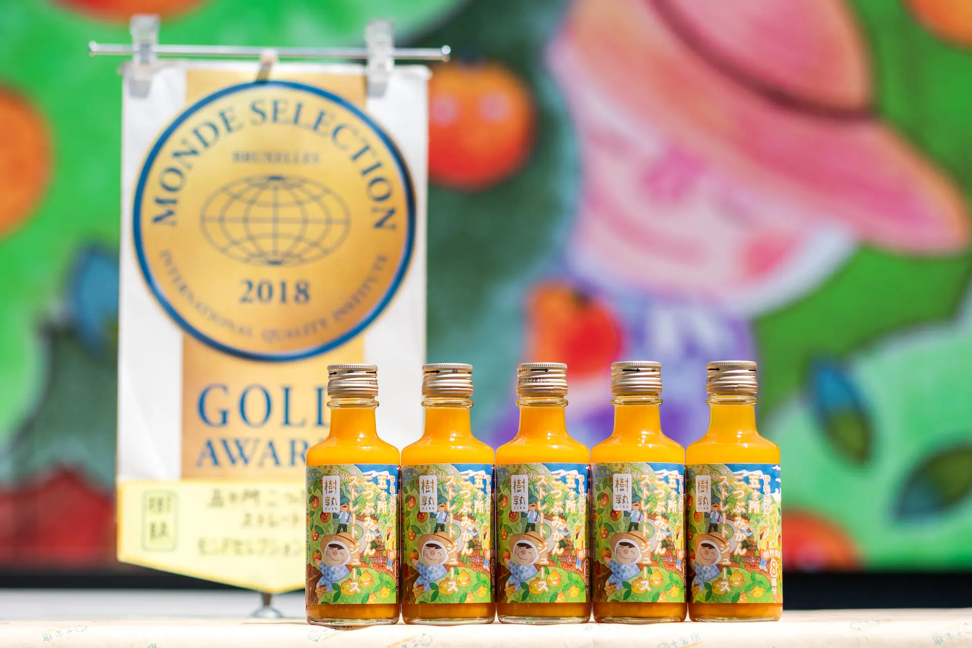 オリジナル商品『樹熟五ヶ所こつぶみかんストレートジュース』(180ml・500円/税込)は、2018年モンドセレクション金賞を受賞。