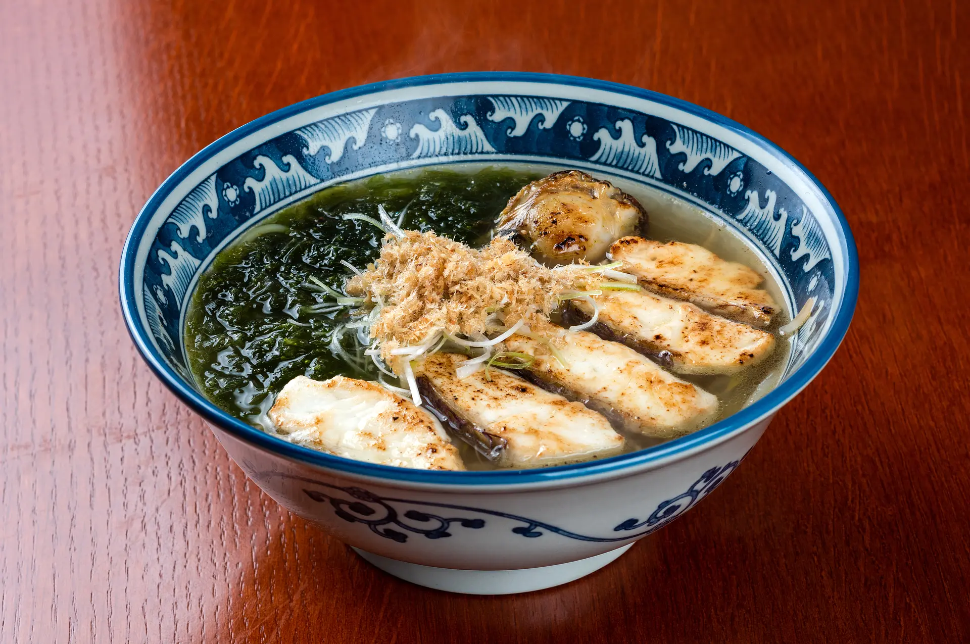 南伊勢町の三大海の幸「鯛」「あっぱ貝」「あおさ」が入っていて、具はもちろん、あっさりとしたスープもおいしい!