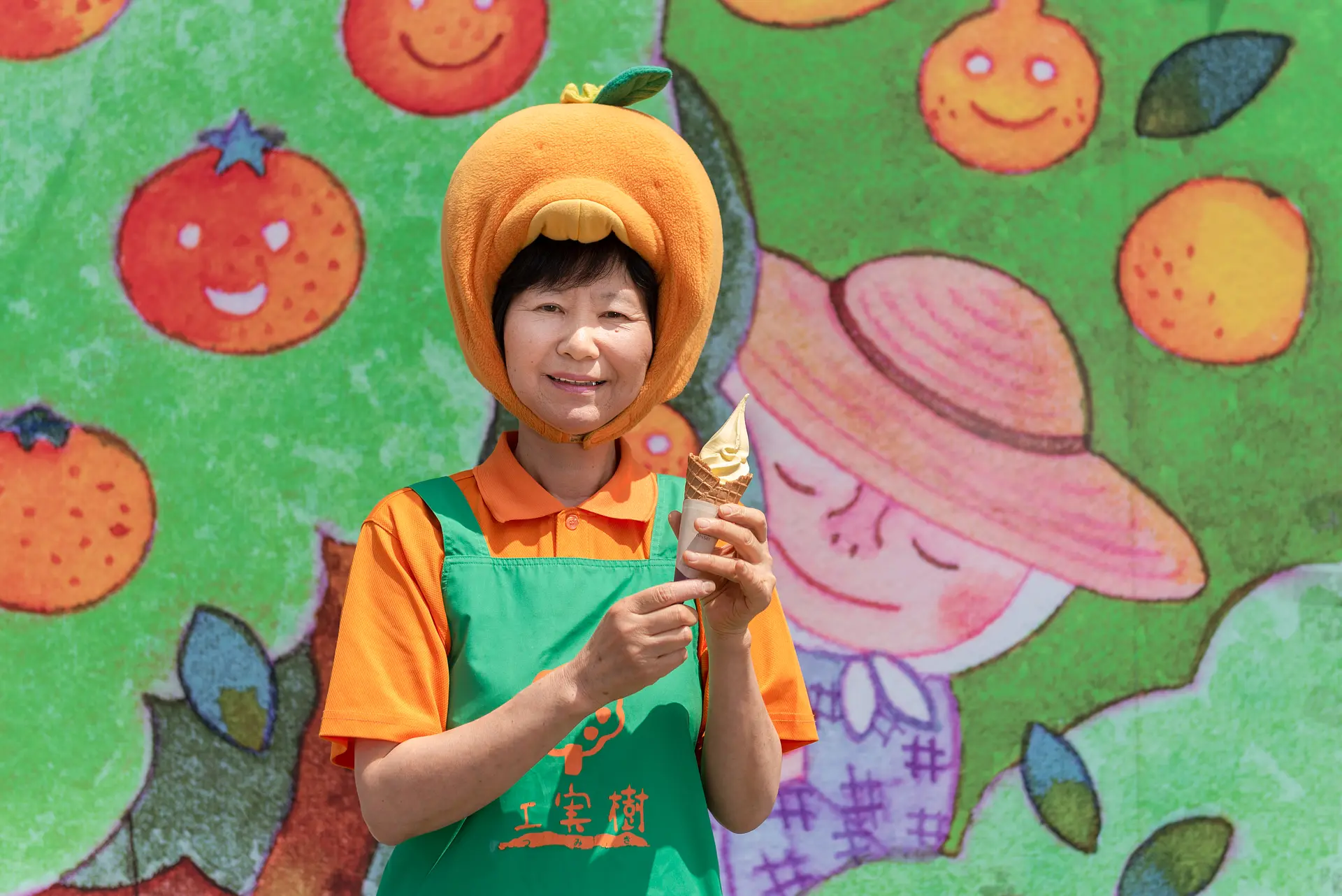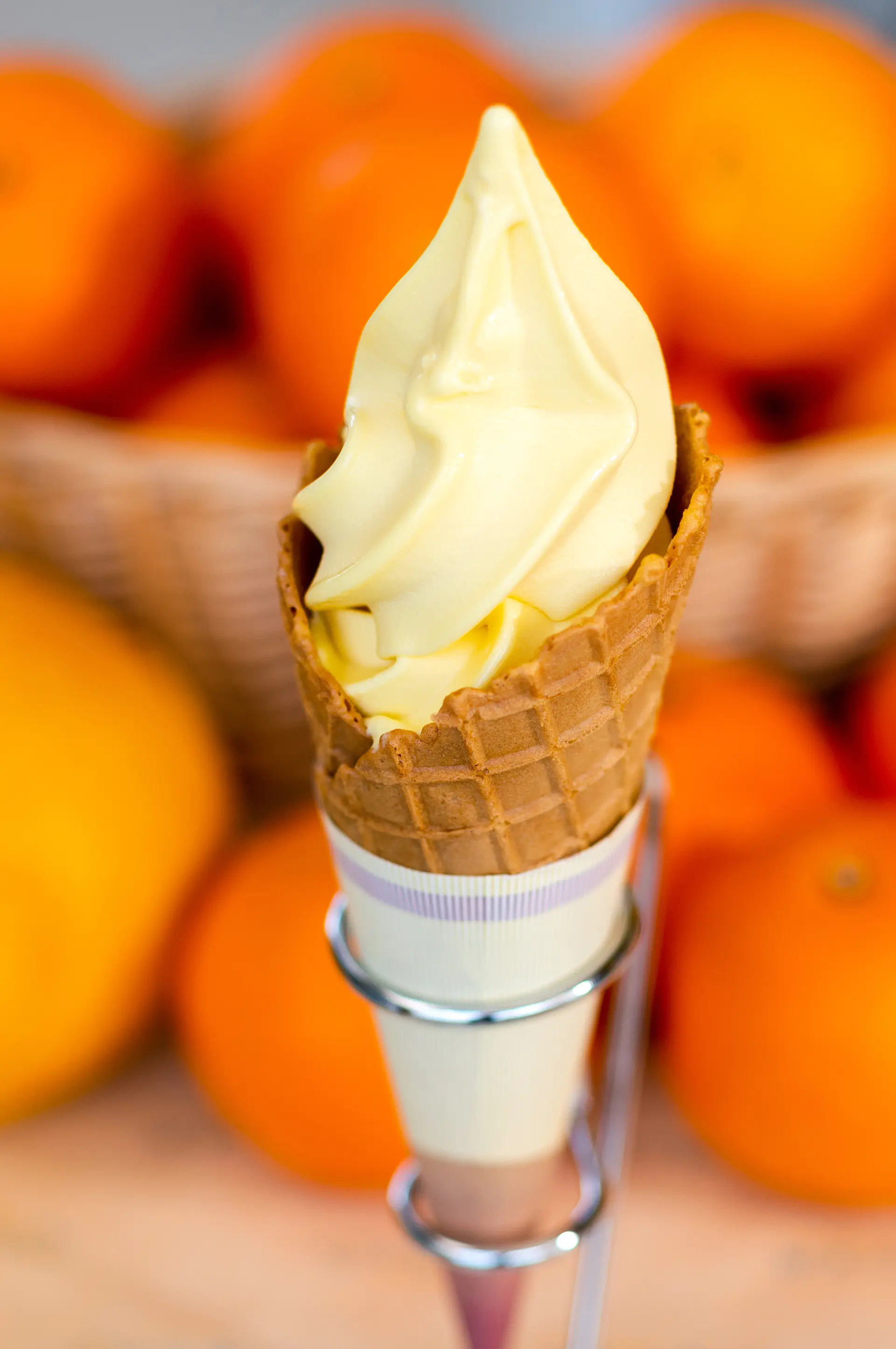 夏の季節、断トツの人気商品「みかんソフト」(350円/税込)。