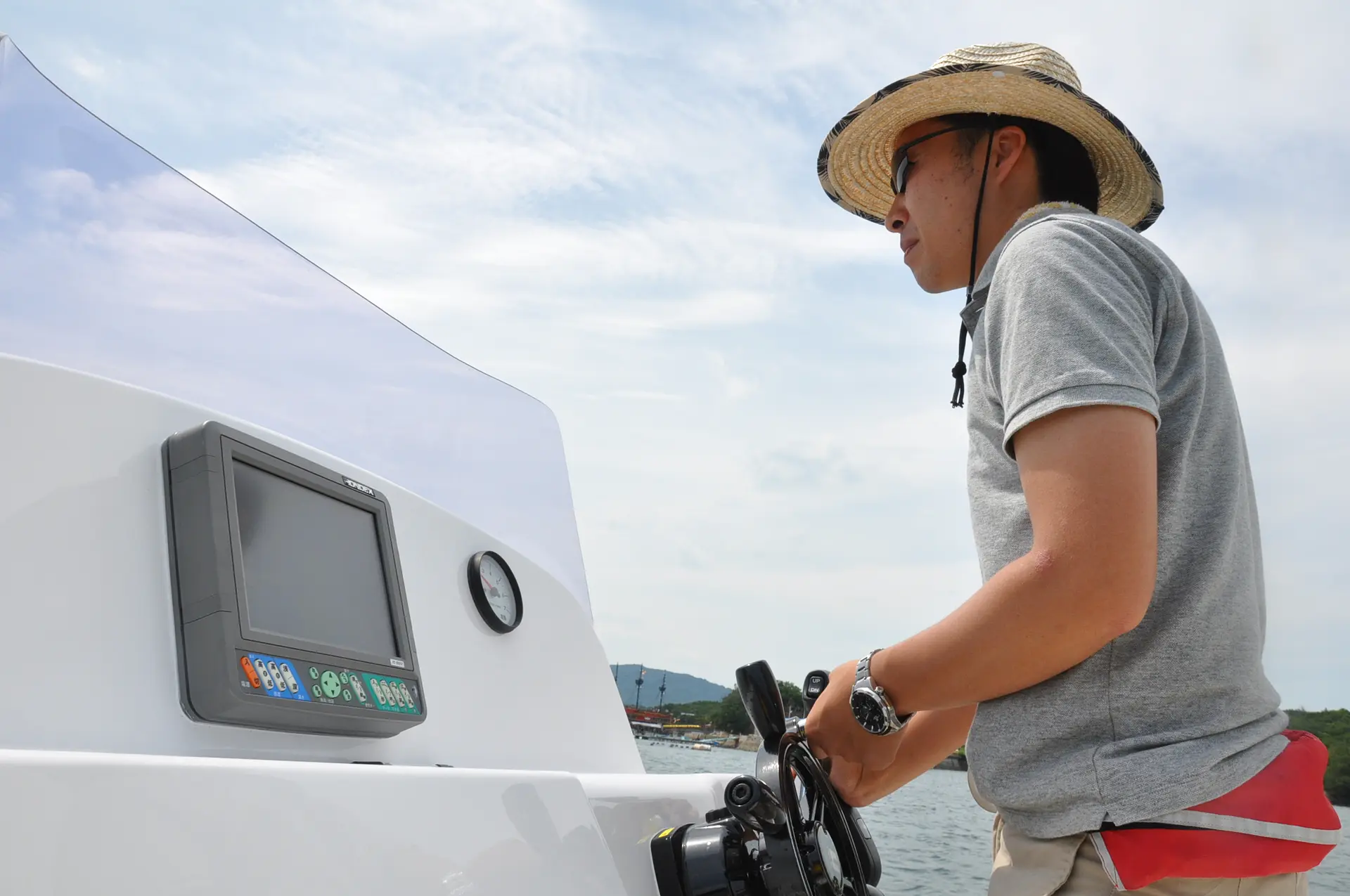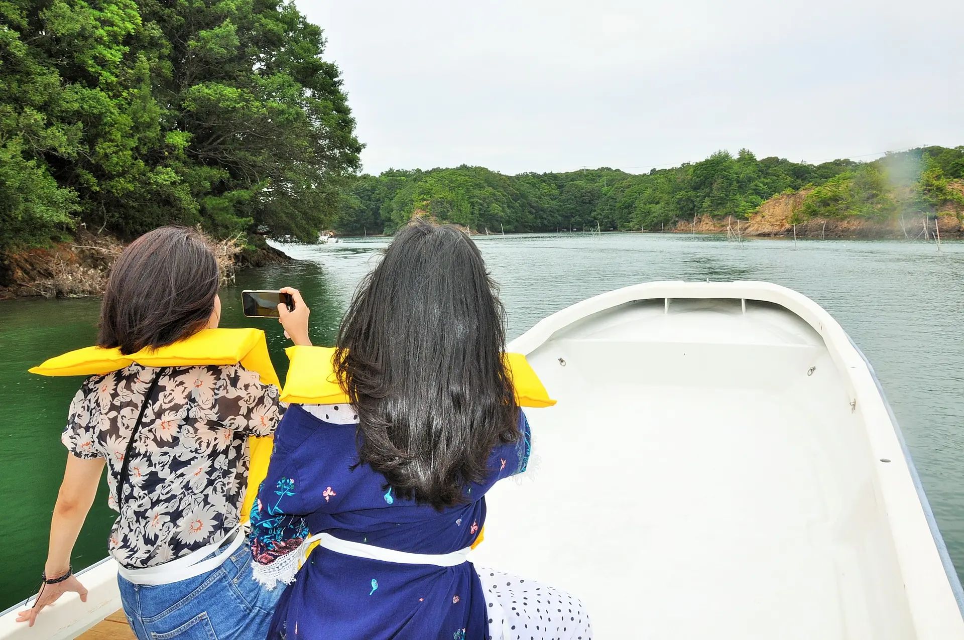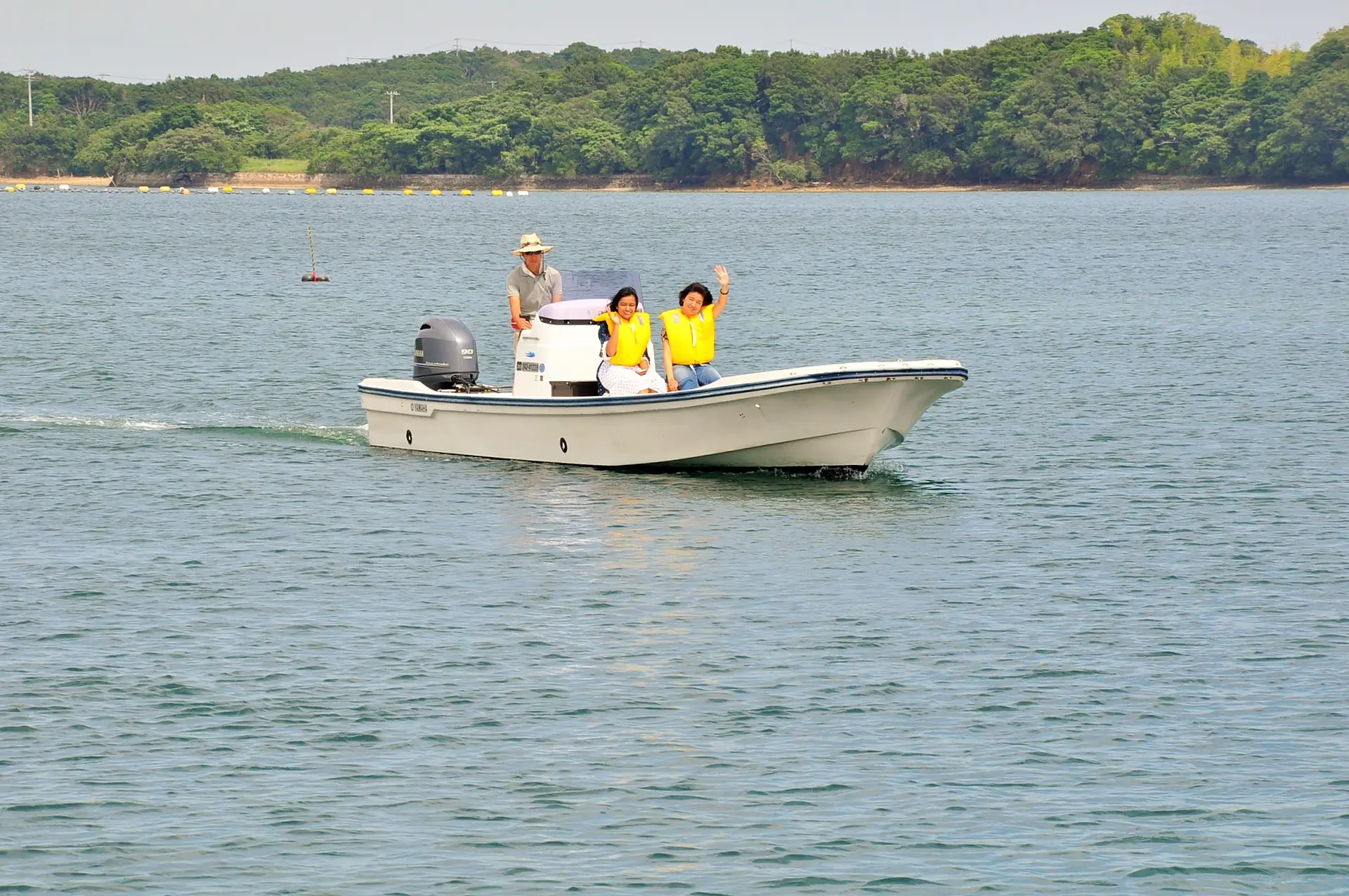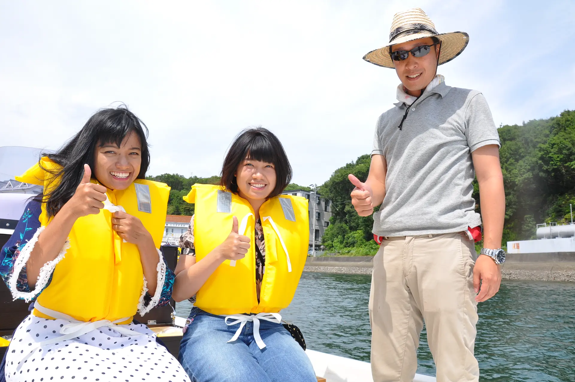 安全のためにライフジャケットを身に着ければ準備OK!出航!
