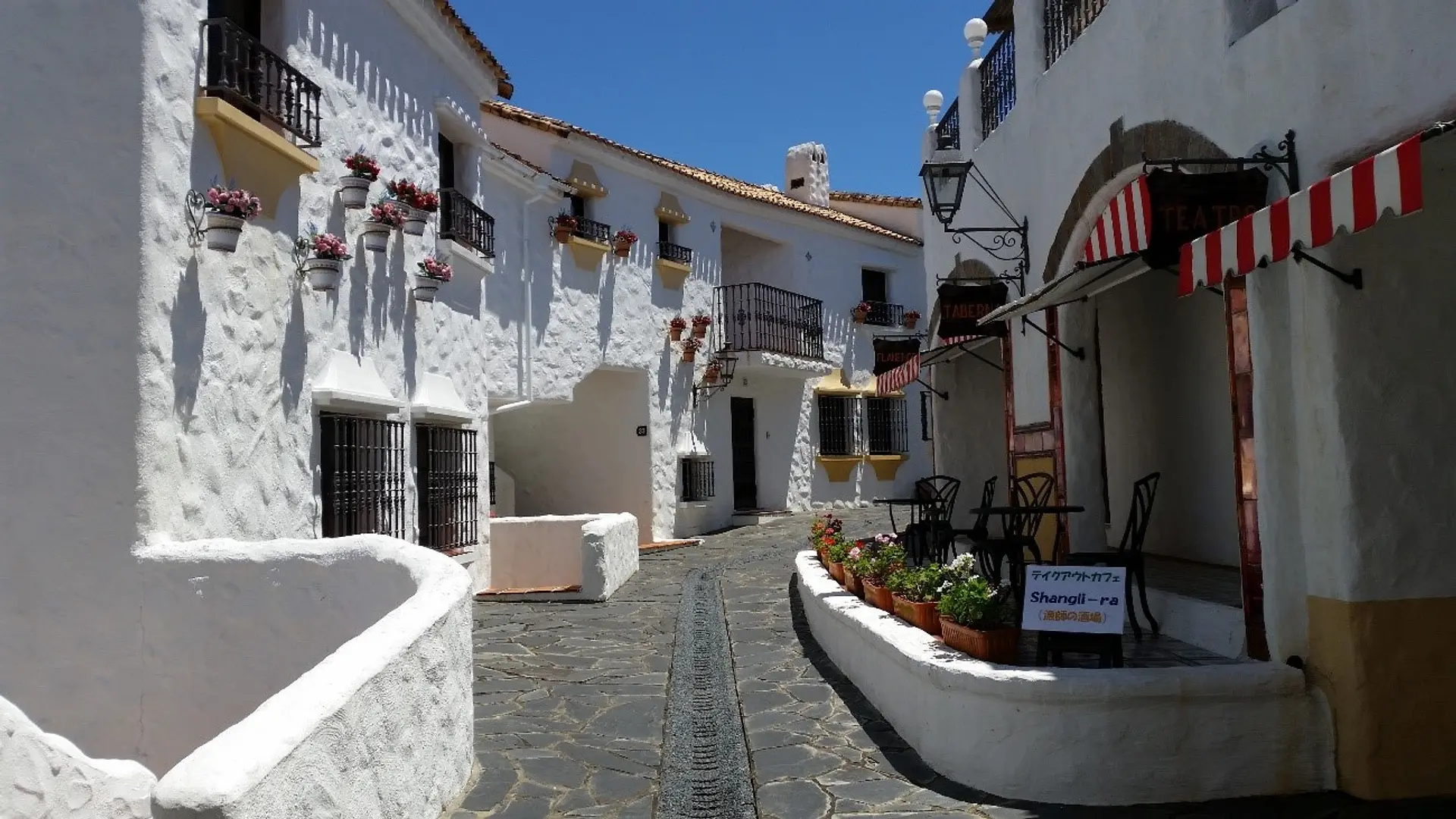 ここは、イタリアやスペイン、ギリシャなどの地中海の都市の街並みを再現したテーマパーク。日本にいながら、海外旅行に行ったような雰囲気を味わえます。