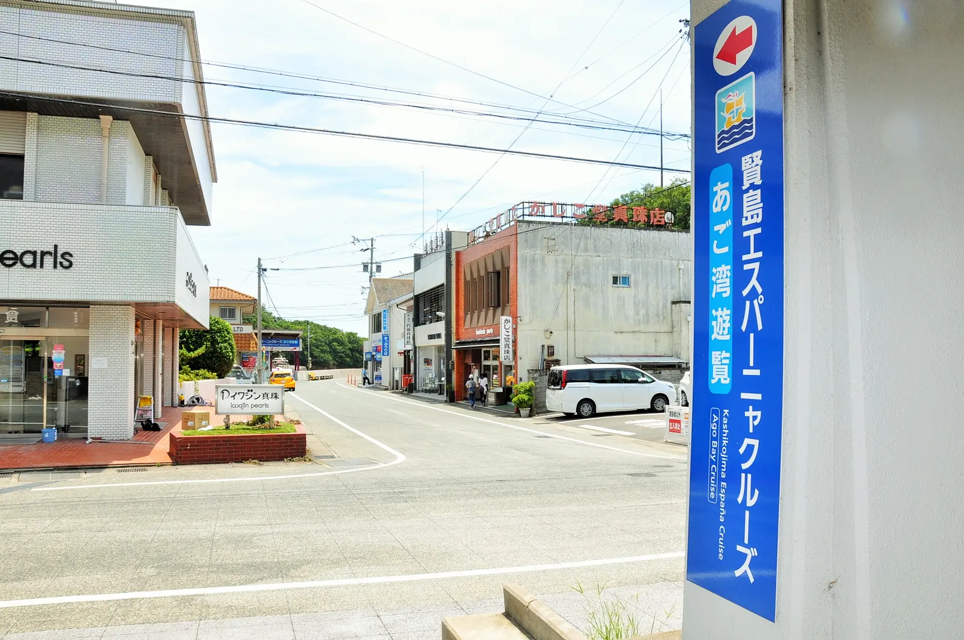 近鉄「賢島駅」から、遊覧船乗り場方面(賢島港側南出口)におりて、まっすぐ進みます。