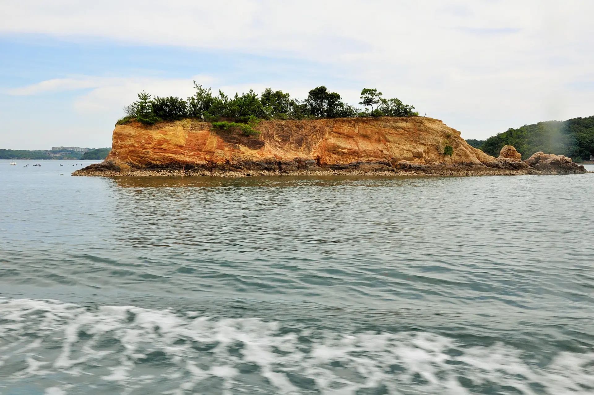 島の周囲はとても美しいリアス式海岸で曲線が美しく、船を進めると島が迫ってくるような迫力があります。
