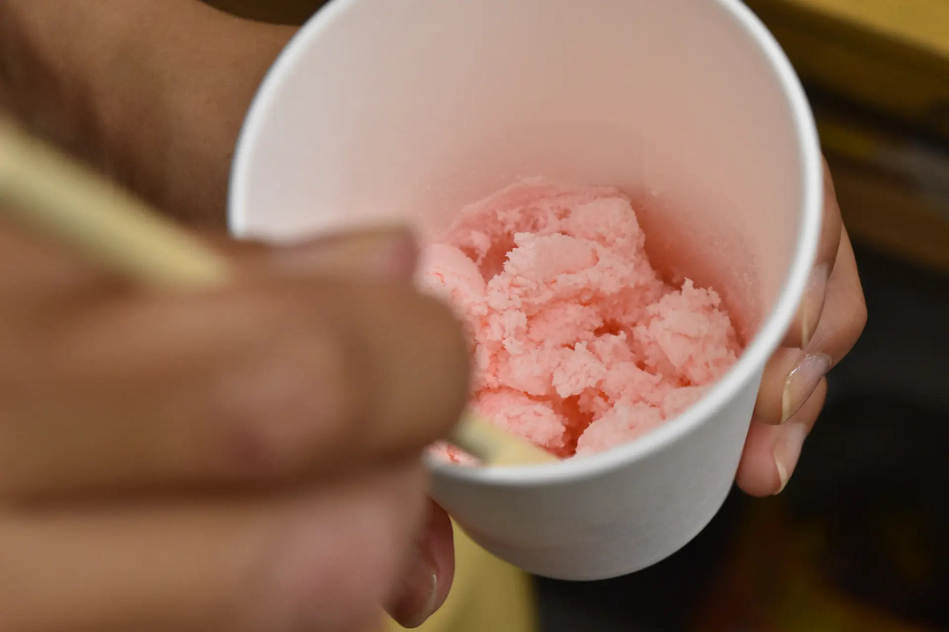 「まずはアイスの味を選びましょう。何味がいいですか?」と代表・安藤さんがたずねます。