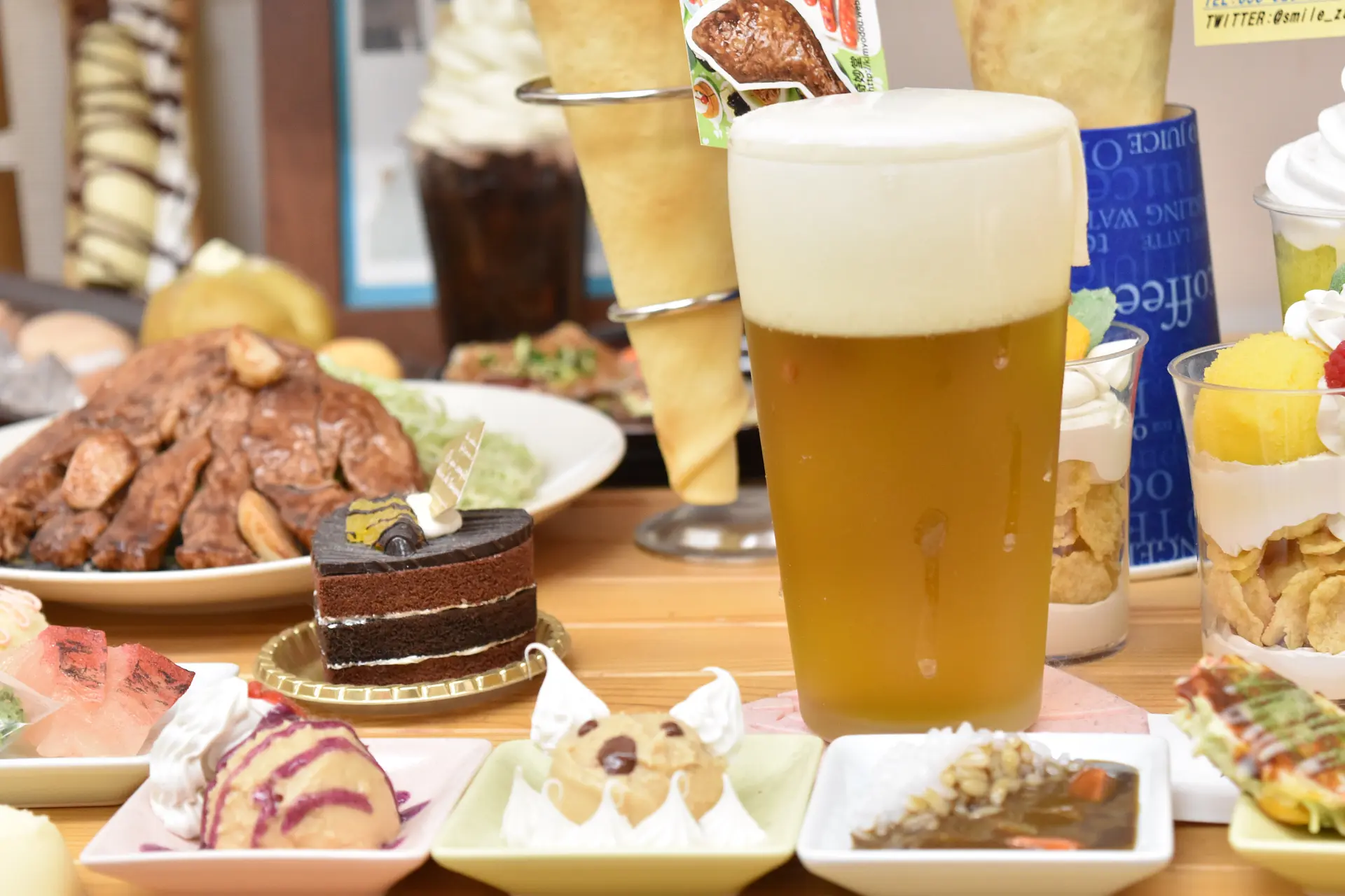 ショーウィンドウの中から道行く人々を誘惑する、美味しそうな食品サンプル。近年は携帯ストラップやキーホルダーとしても人気です。