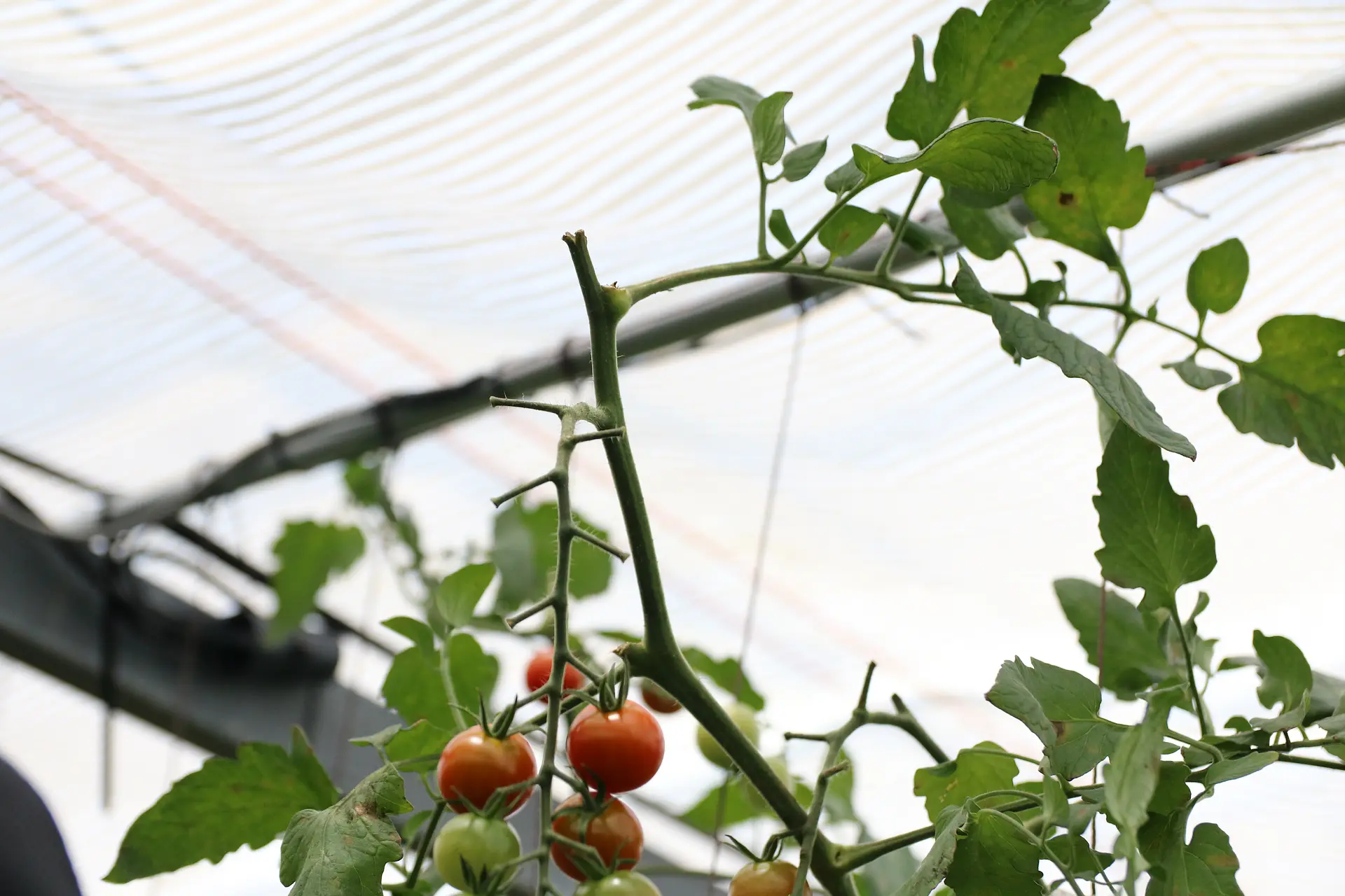 伸びてきた枝を切り、低めに栽培することで糖分がぎゅっと凝縮し、甘いトマトが作られています。