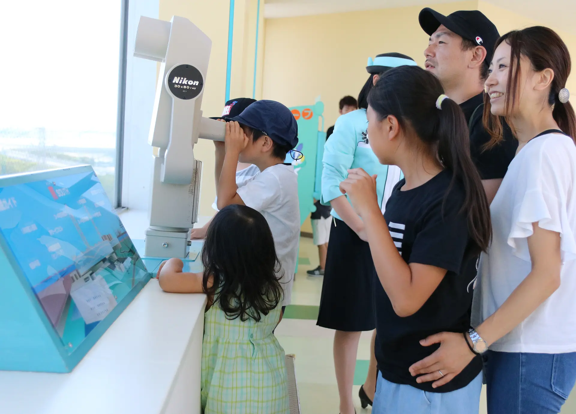 川越町の街並みや発電所設備を見て家族で楽しめるコミュニケーションスペースになっており、みんなで壮大な景色を楽しみましょう!