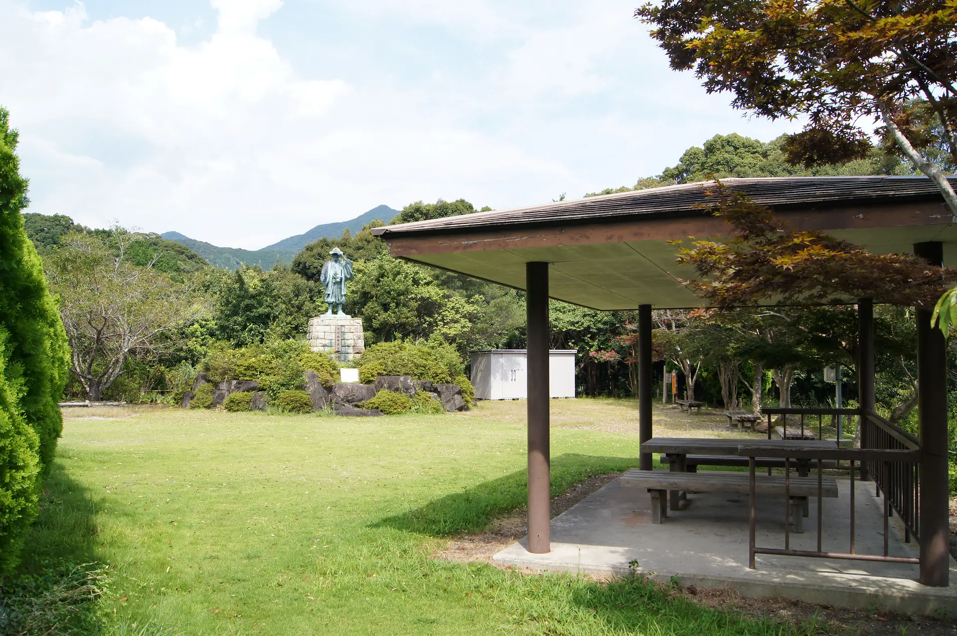自然いっぱいのロケーションで、屋根付のベンチ・テーブルもあり、旅の休憩ポイントとしてもぴったり!
