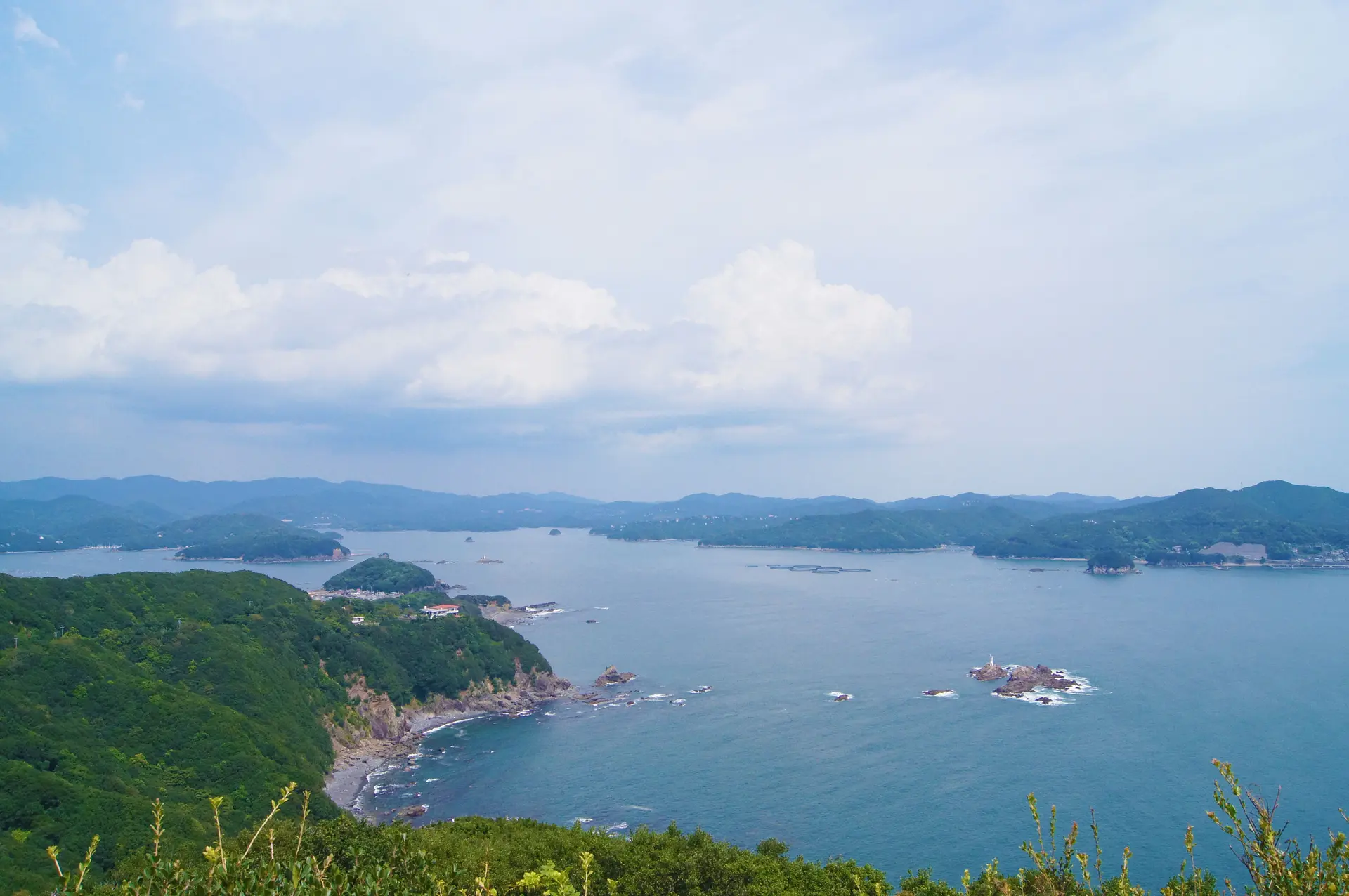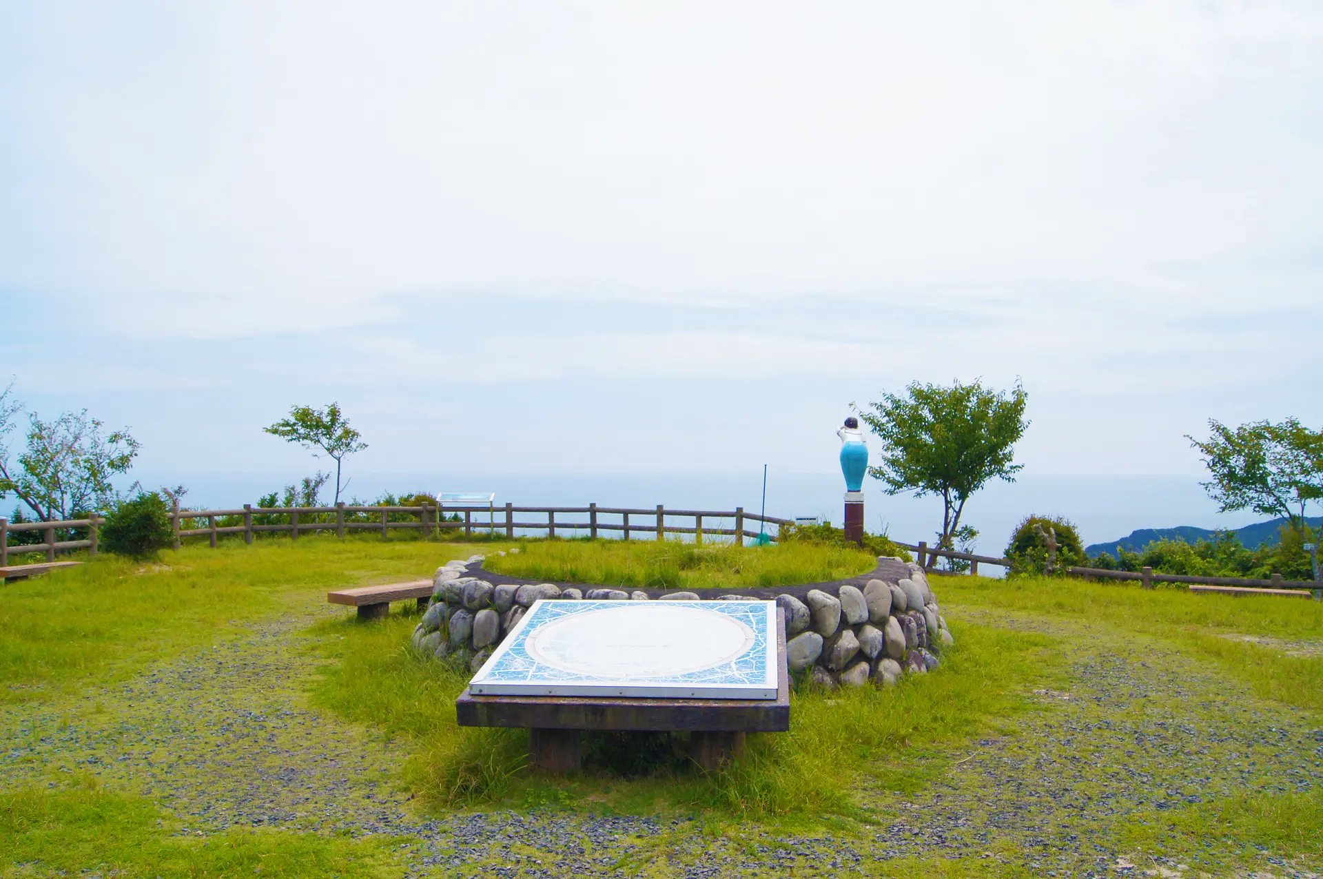 度会郡南伊勢町海抜約150mに位置し、水平線や入り組んだ五ヶ所湾など360度の大パノラマが楽しめる展望台。 美しい曲線を描く相賀ニワ浜や、国内でも珍しい海跡湖(かいせきこ)の大池(おいけ)なども見ることができます。 特にこの風景は、日本三景の天橋立にも見えると話題に。 周辺には遊歩道もあり、クチナシ、ソメイヨシノなど季節の美しい植物を楽しみながら散策できます。鳥の鳴き声や、波の音を聞きながら歩く展望台までの道のりも、自然を満喫できる時間。 また、夜は明かりが少なく絶好の星空観察スポットとして人気。満天の星を楽しむことができます。 展望台にある、はるか水平線を望む像は展望台のアイコンになっています。 ☆南伊勢エリアの最新情報は町公式インスタグラムで毎日更新中です https://www.instagram.com/minamiisetown_official/