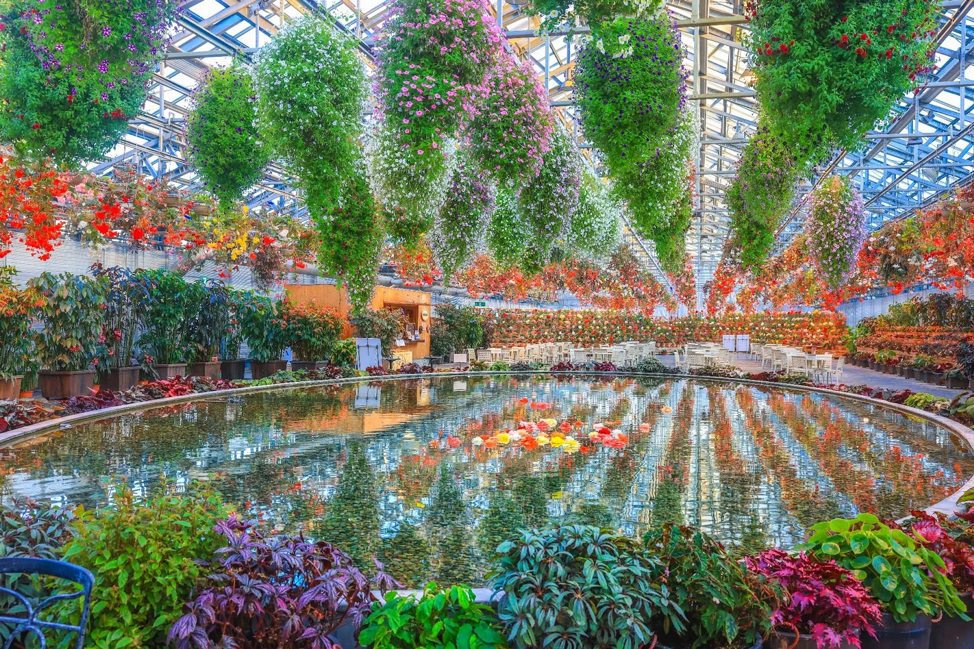 館内には約5,000鉢の球根ベゴニアと、世界各国から集めた数百種・1万2千株の花々が咲き誇り、年中通して美しい花を鑑賞できます。