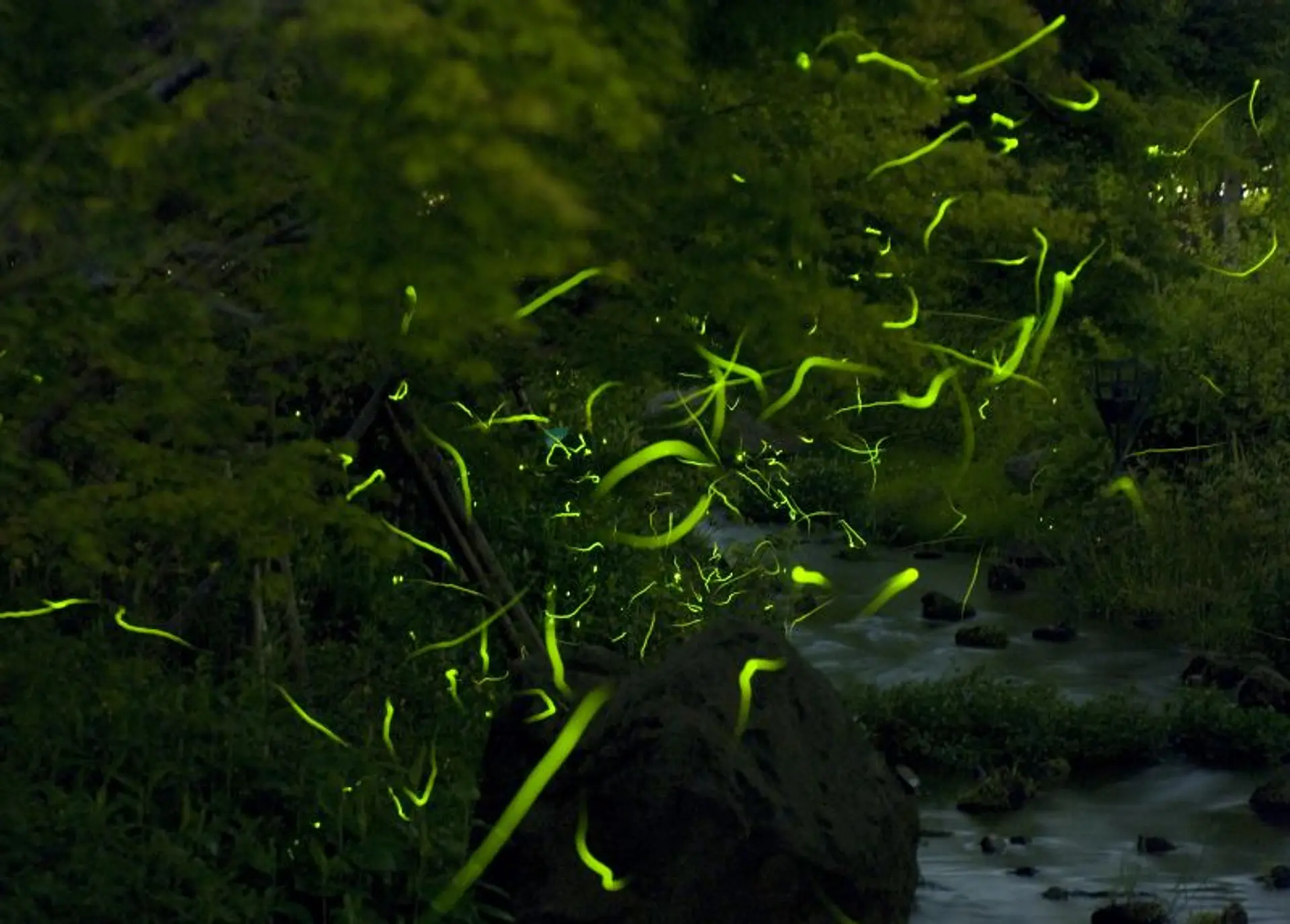 期間中のホタル出現数は数千匹~約1万匹と圧倒的で、水辺の歩道から優雅に飛び交うホタルを鑑賞できます。