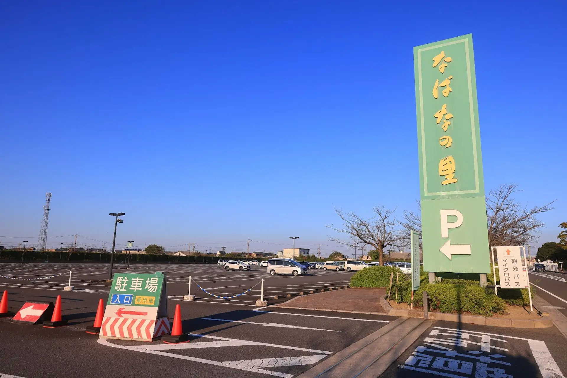 なばなの里の駐車場は無料で利用でき、5700台分の広大な駐車スペースを完備しています。