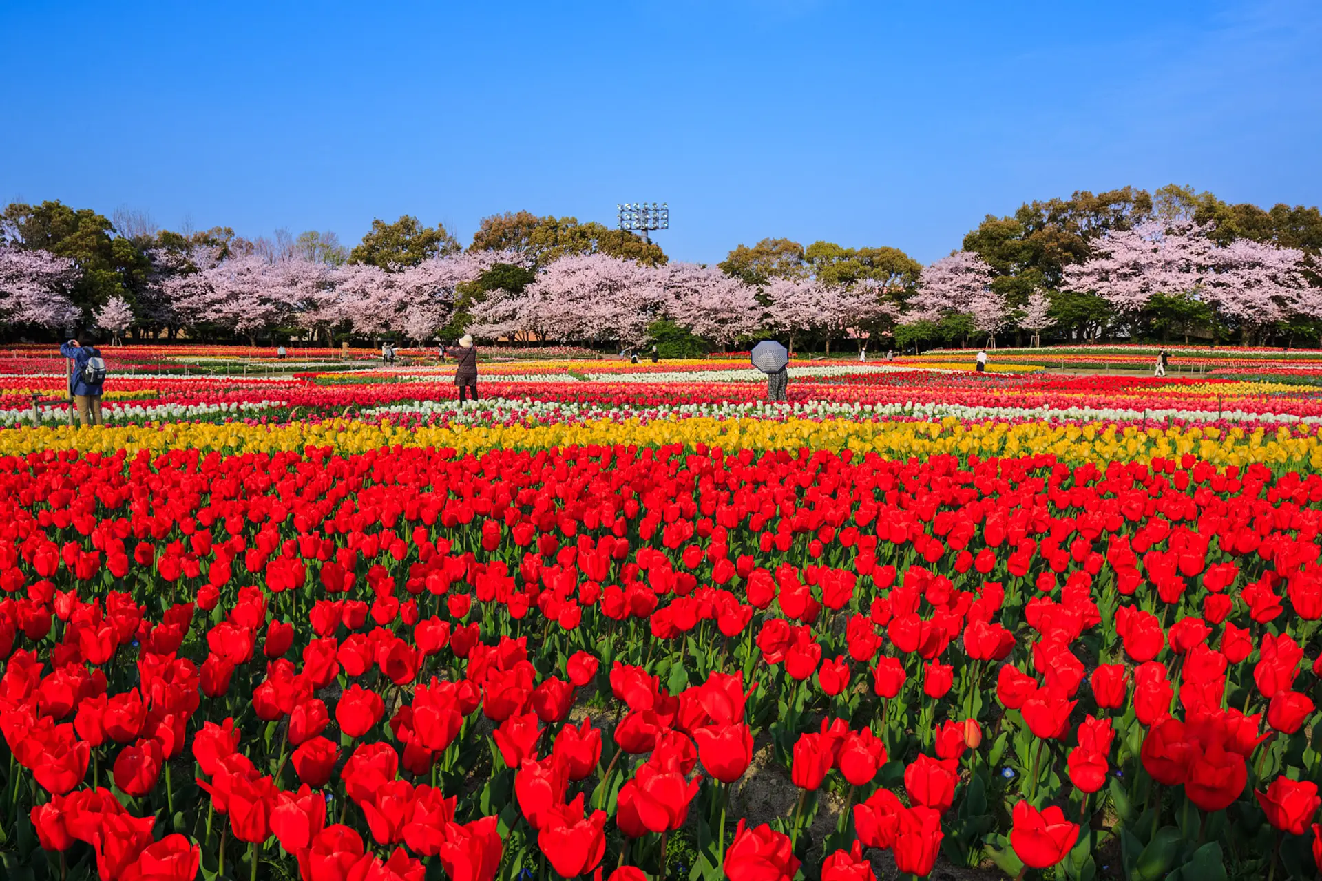 「チューリップまつり」は園内の「花ひろば」に約180万球のチューリップが咲くイベントで、年間の花イベントの中では最も人気があります。