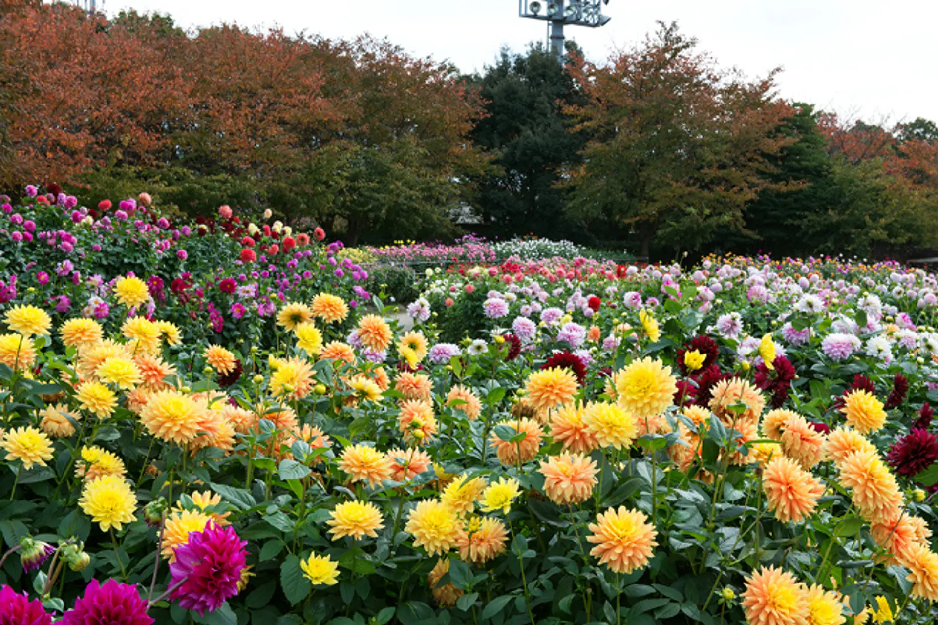 「ダリア・コスモスまつり」は園内の花ひろばに150万本のコスモスと8000株のダリアが咲き誇るイベント。