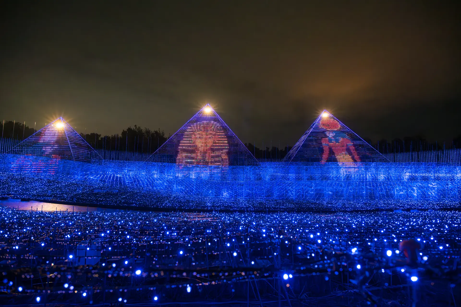 雄大な景色が魅せる美しい絶景や、想像を超える壮大な情景を、余すところなく表現するために、高さ約25mの三大ピラミッドと、横幅約155mというすべてを圧倒する大スケールで展開。