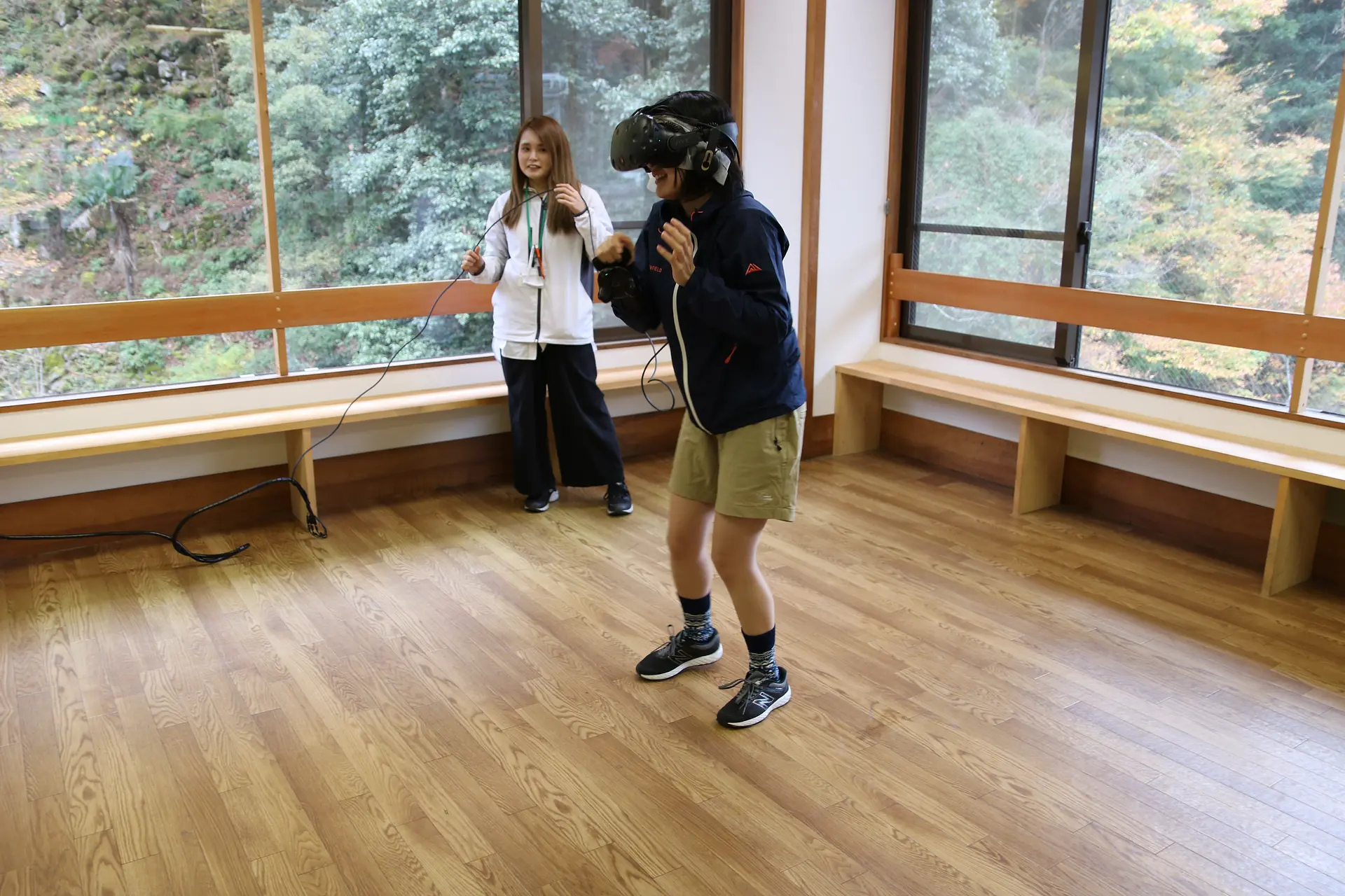 こちらのVRは、赤目四十八滝のすぐ隣にある「忍者の森」での「忍者修行体験」の一部として行われています!