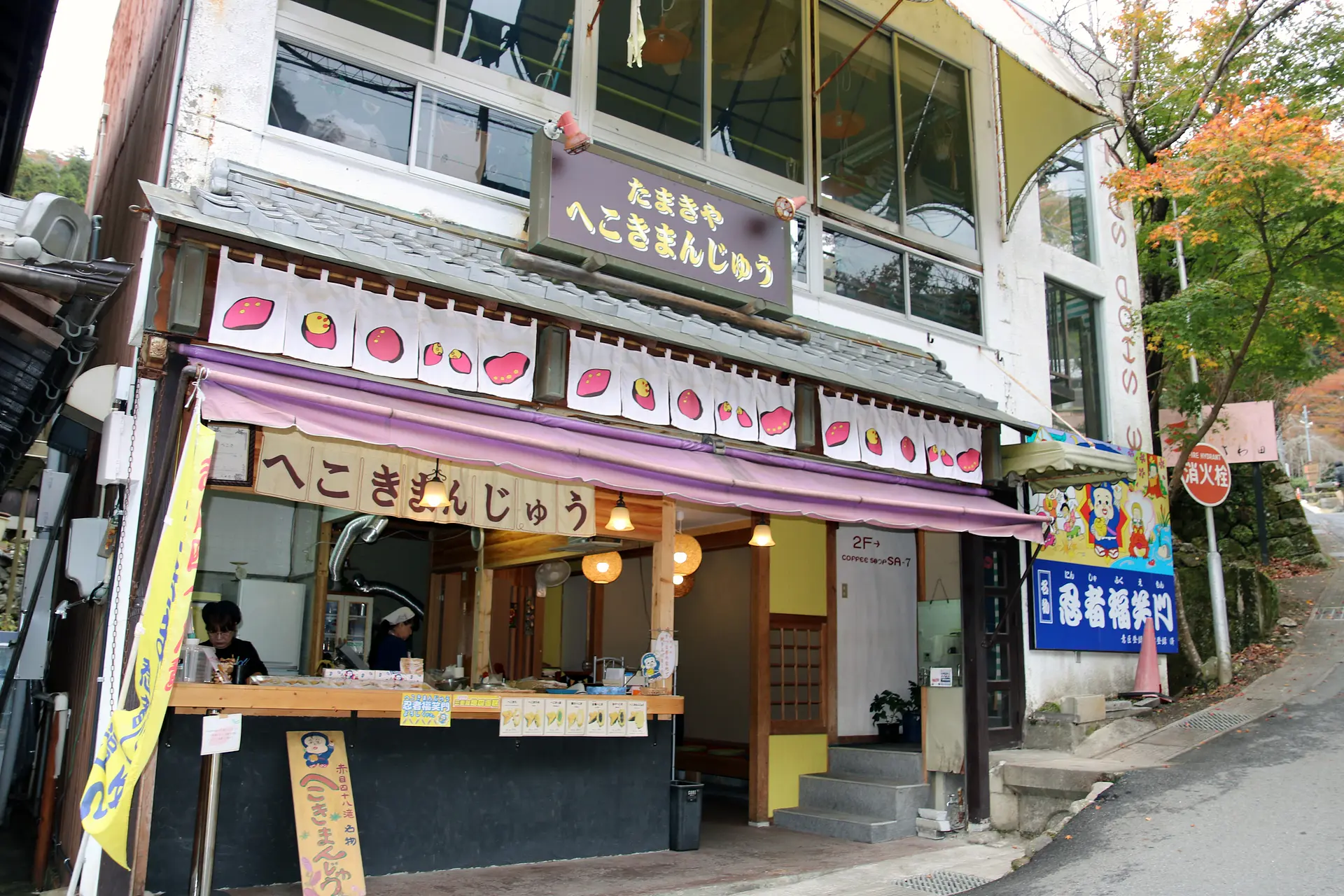 名張市国定公園赤目四十八滝の名物の忍者の形をしたさつま芋たっぷりの和風スイーツ。名前にびっくりしますが、食べれば満足の美味しさです。名張市の地元の方はもちろん、赤目四十八滝に来られる方には定番の商品です。小さなお店ですが店頭にはたくさんの方が並ぶ時もあります。 生地のみのへこきまんじゅうの他、粒あん入、クリームチーズ入、りんご入等、様々な種類があります。お持ち帰りができますので家で温めて食べるのもいいのですが、なんといっても出来立てがおススメ!熱々のへこきまんじゅうをお召し上がりください。