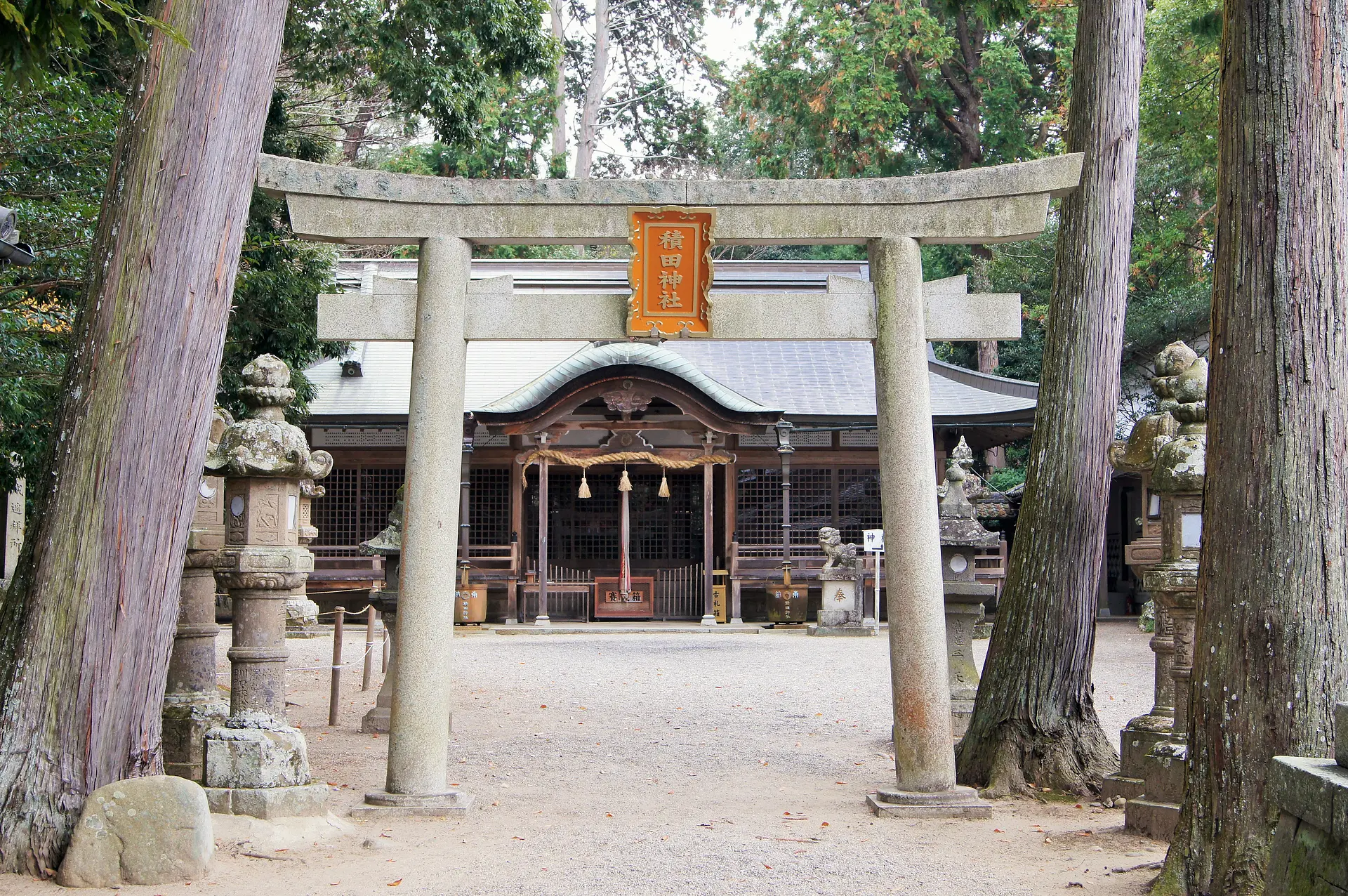 積田神社は、「南都春日大社奥宮」(なんとかすがたいしゃおくみや)ともいわれ、今から約1250年前、鹿島大神(かしまおおみかみ)が常陸国(ひたちのくに・現在の茨城県)から大和国(やまとのくに・現在の奈良県)春日大社にご遷幸の途中に、立ち寄られて鎮座された宮です。