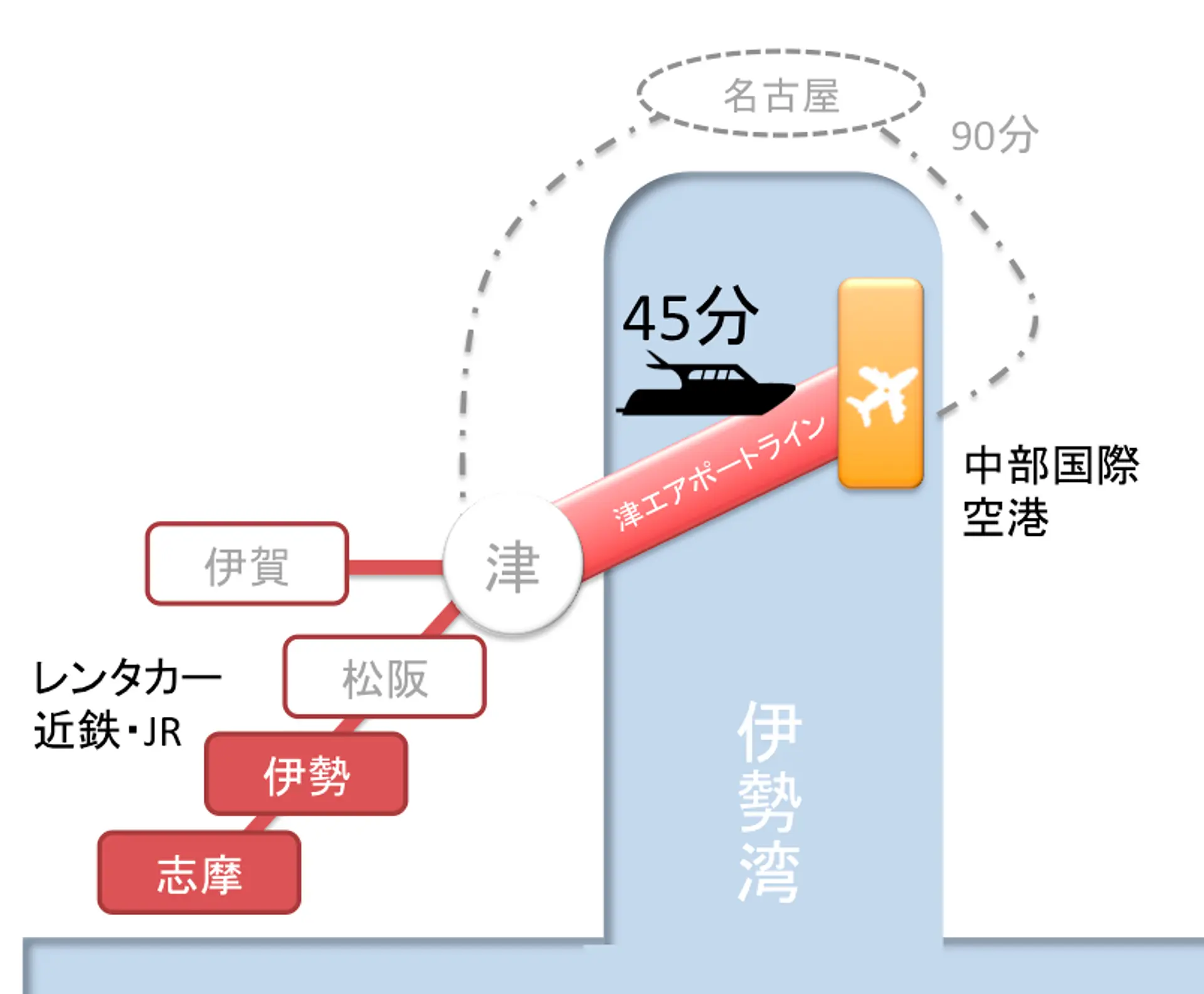 中部国際空港まで飛んで来れば、津エアポートラインで伊勢志摩・伊賀はすぐそこ!もう伊勢志摩は遠くありません。