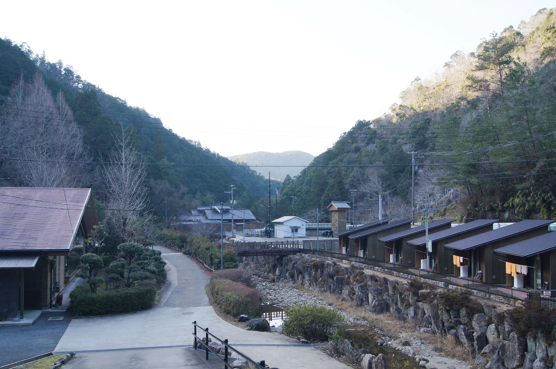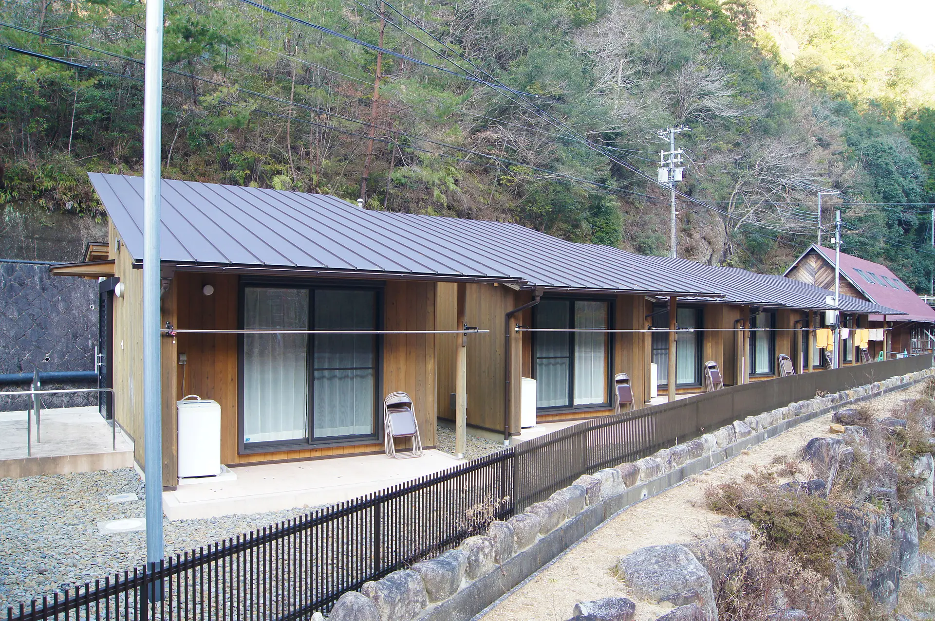 「湯ノ口温泉」自体には宿泊できませんが、周辺には、バンガローやコテージがあり、1泊から利用することができます。