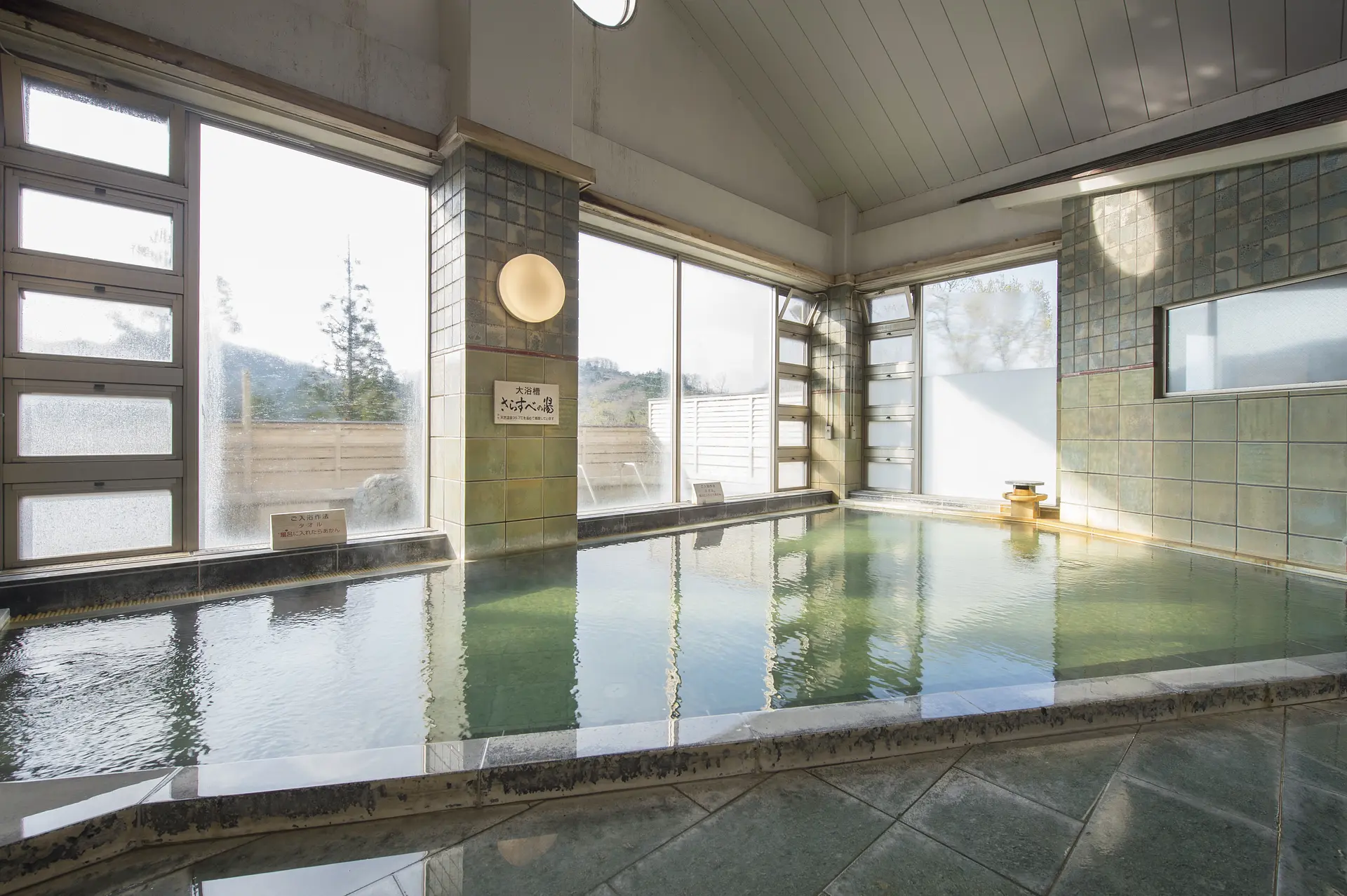 山々に囲まれた、自然あふれる風景の中にある温泉施設です。