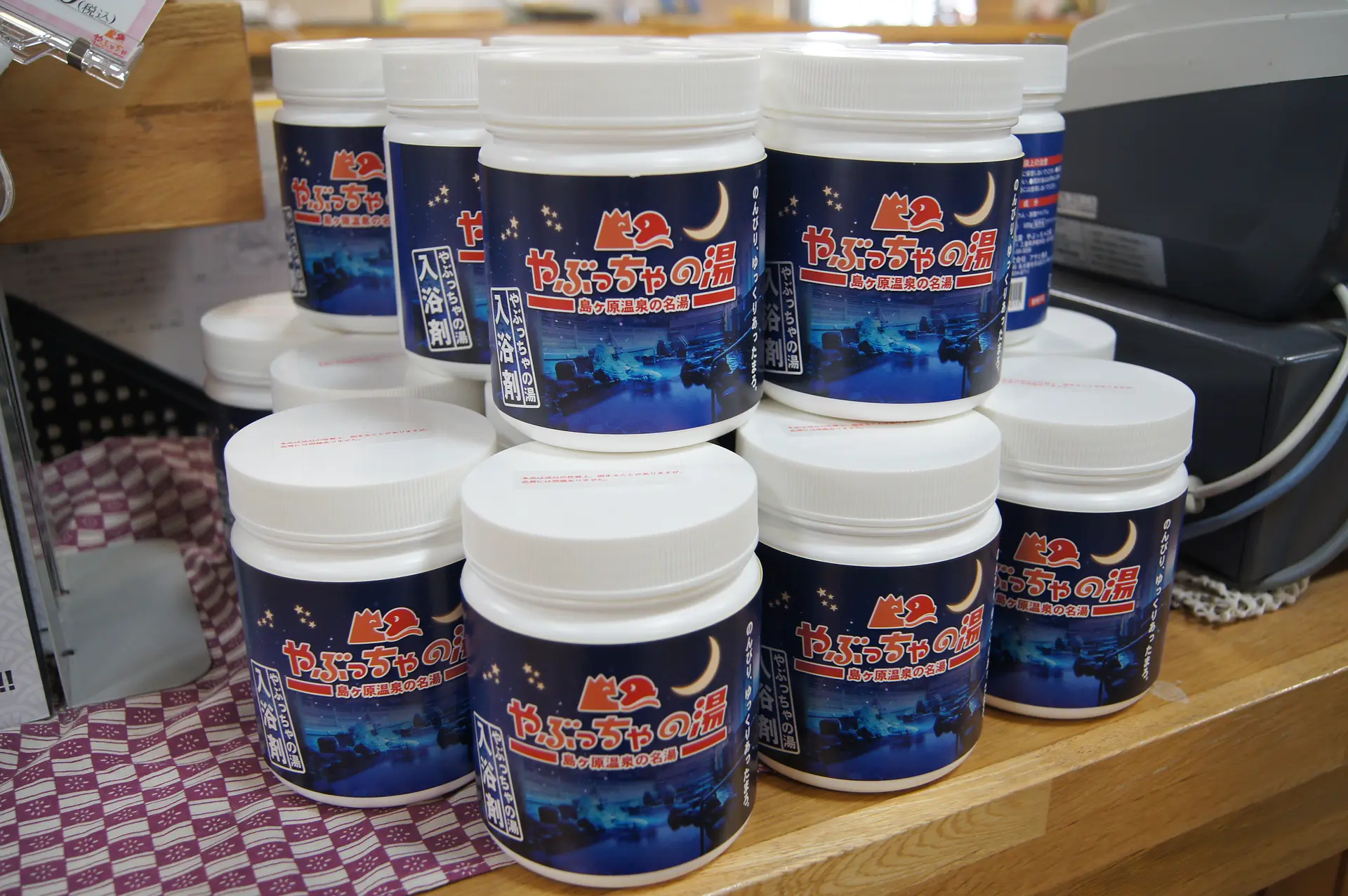 おうちで、「こっとの湯」を再現できる「やぶっちゃオリジナル入浴剤」(1,200円/税込)。