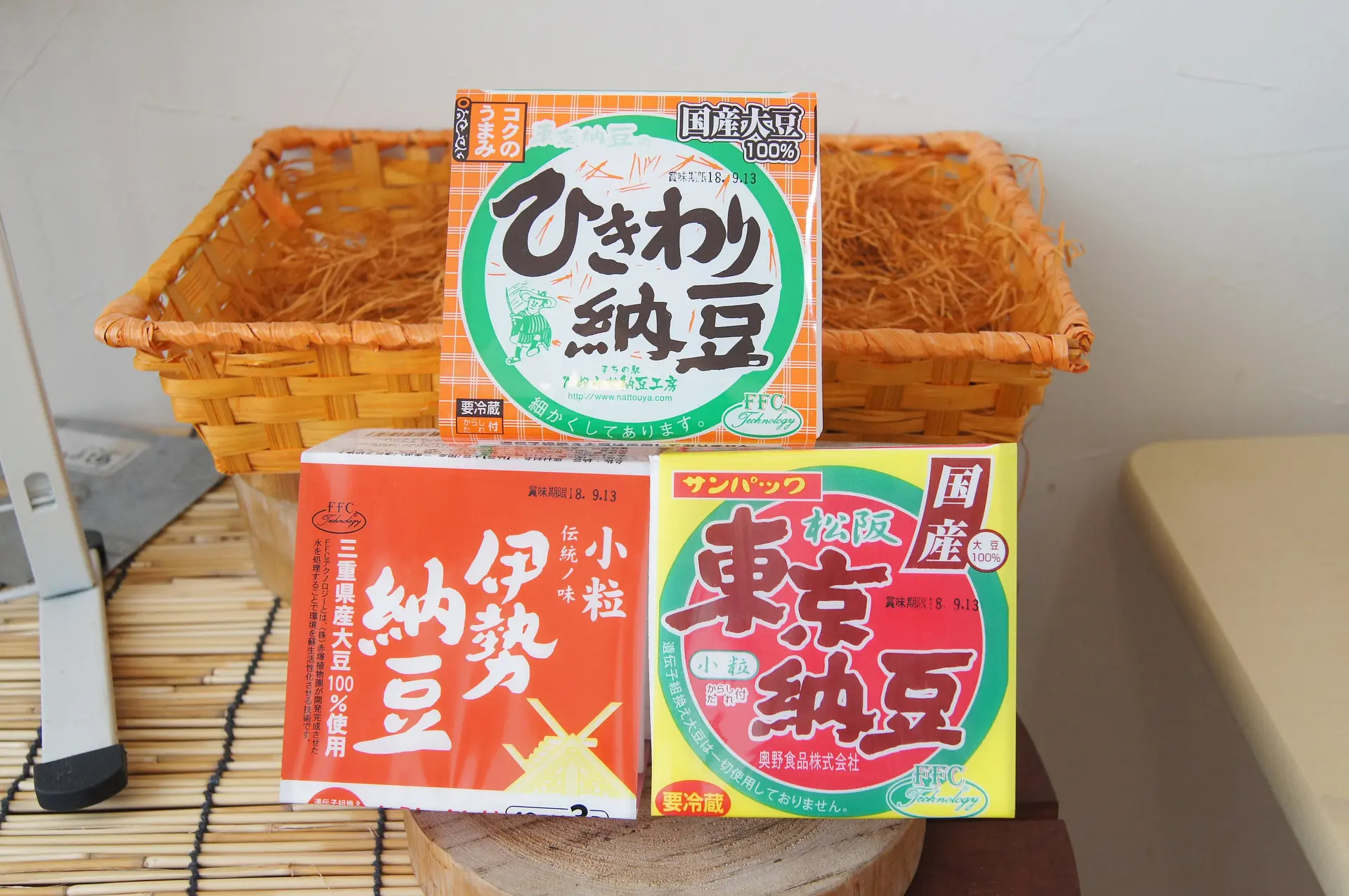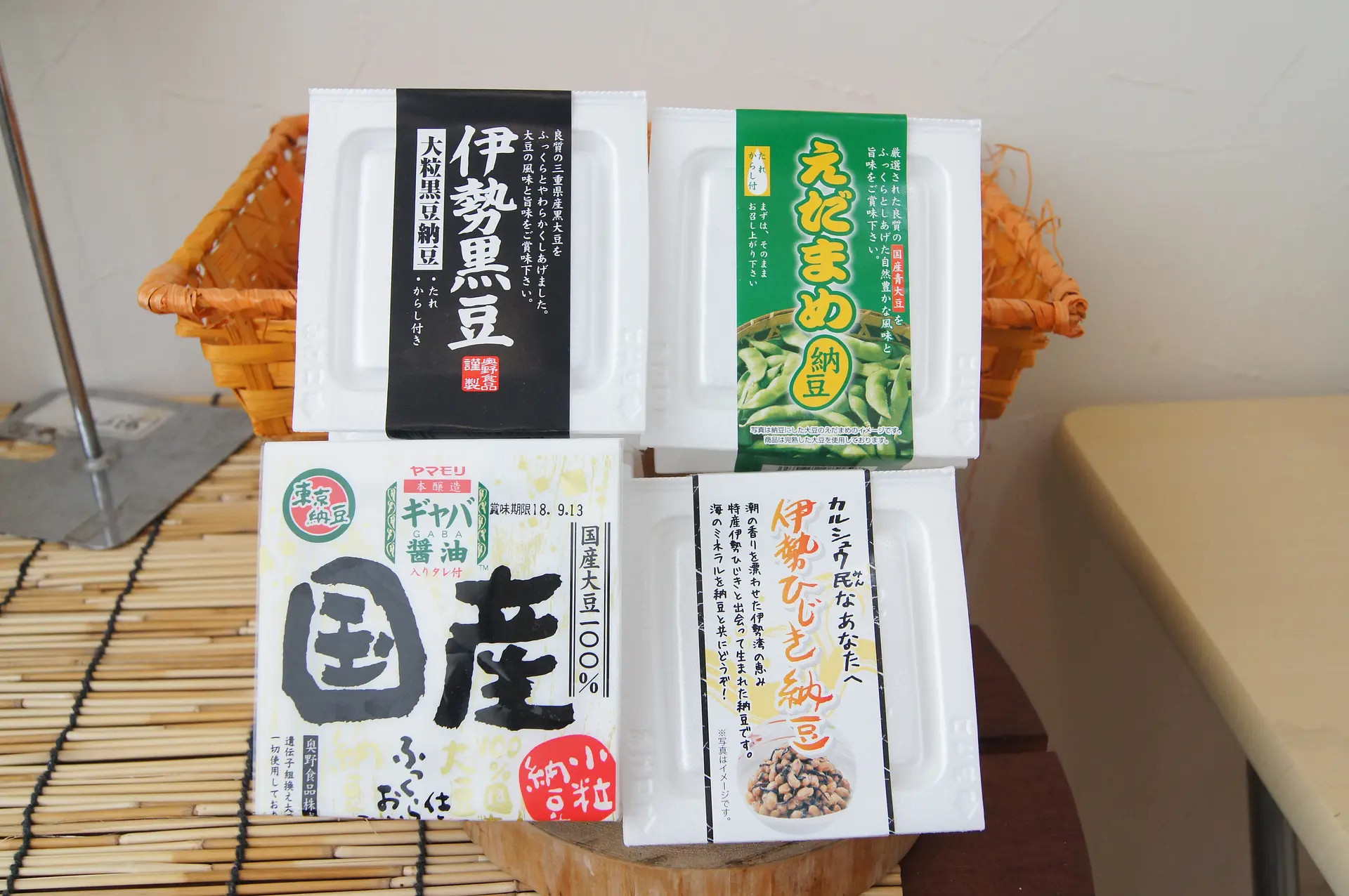 独特の旨みを逃さない製法でつくられた「ひきわり納豆」(120円/税込/写真上段)、伊勢の地で親しまれてきた「藁納豆」を食べやすいトレイに再構成した「伊勢納豆」(171円/税込/写真下段左)も、安定した人気を誇っています。
