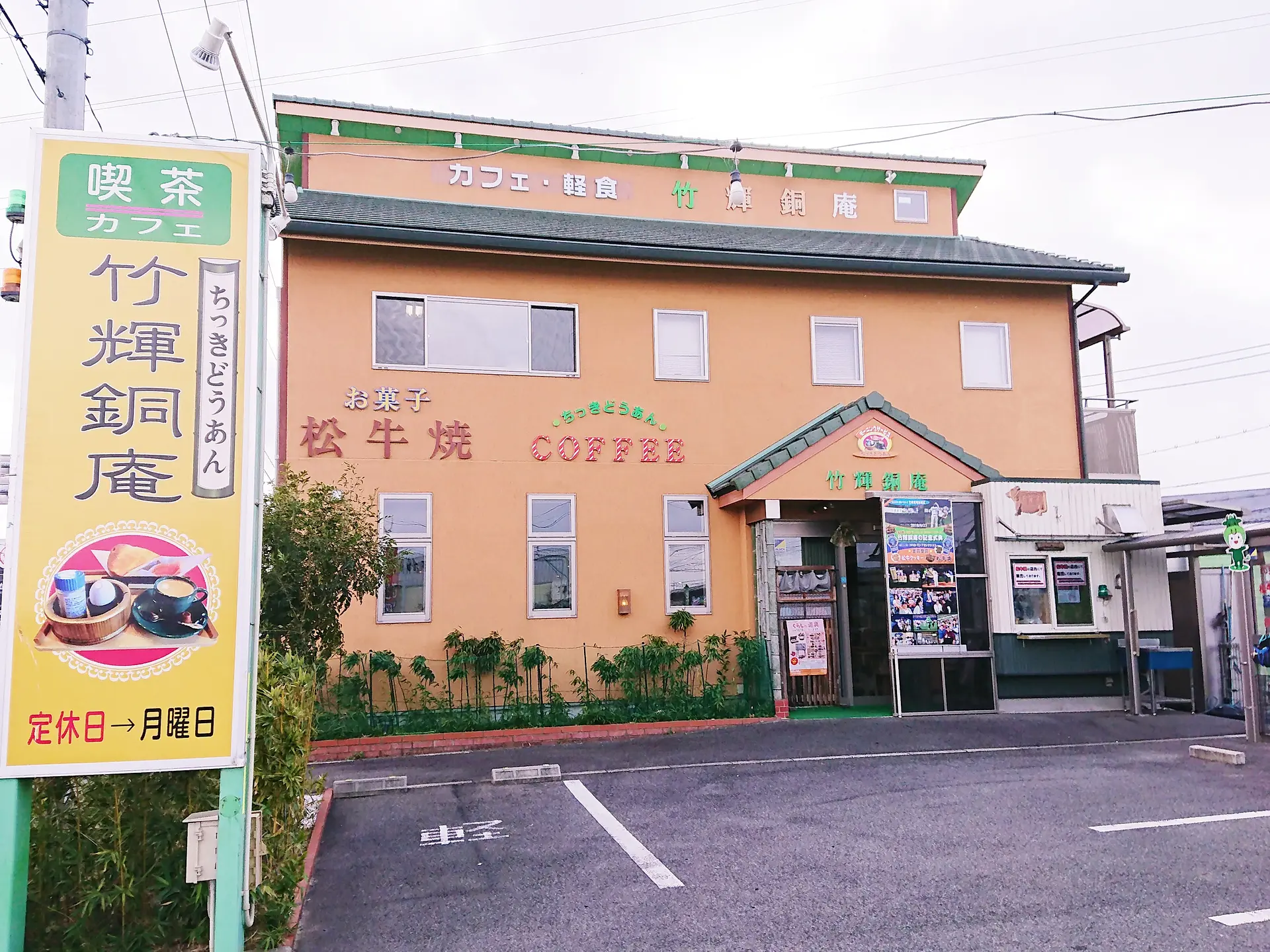 「竹輝銅庵、ここです! 松牛焼という松阪牛の形をしたグルメで有名なんです。中に松阪牛のしぐれ煮が入ったものもあるそうですよ! ぜひ食べていきましょう!」