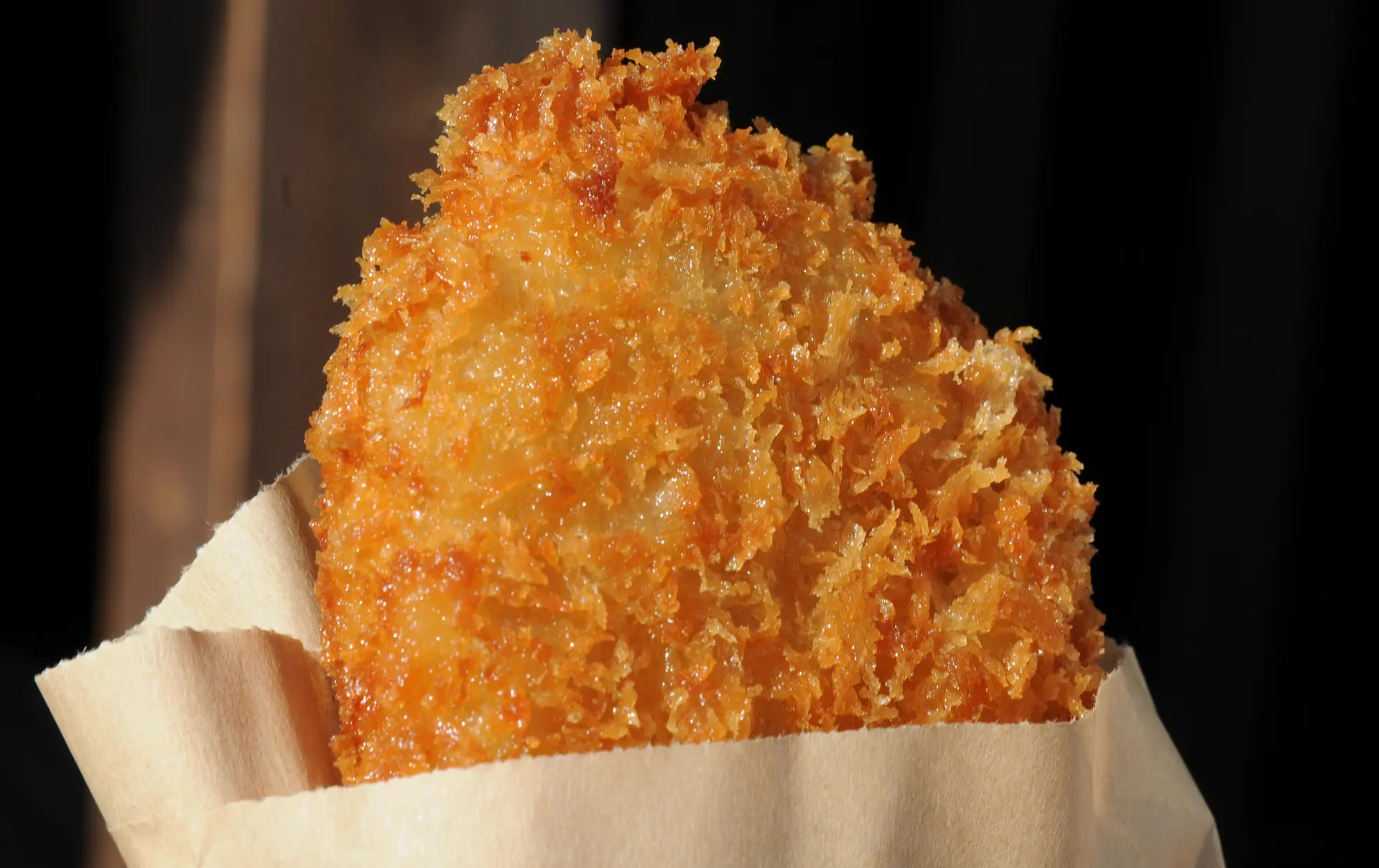 紙袋に入ったコロッケとミンチカツをお店の方から手渡してもらうと、袋越しに温もりが伝わってきます。